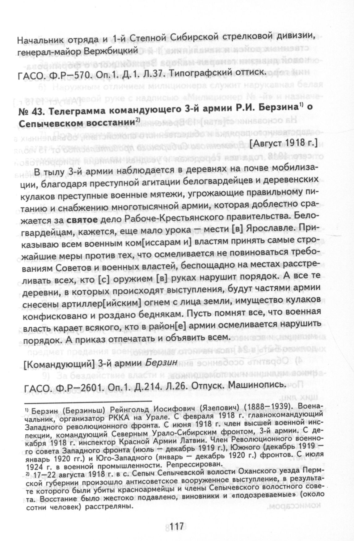 Телеграмма командующего 3-й армии Р.И. Берзина о Сепычевском восстании. Август 1918 г.