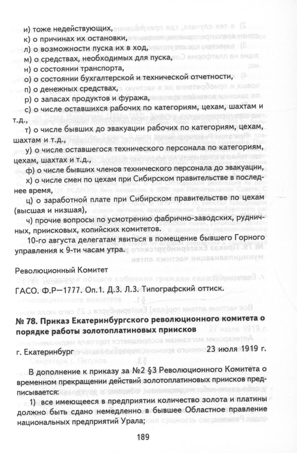 Приказ Екатеринбургского революционного комитета о порядке работы золотоплатиновых приисков. г. Екатеринбург, 23 июля 1919 г.