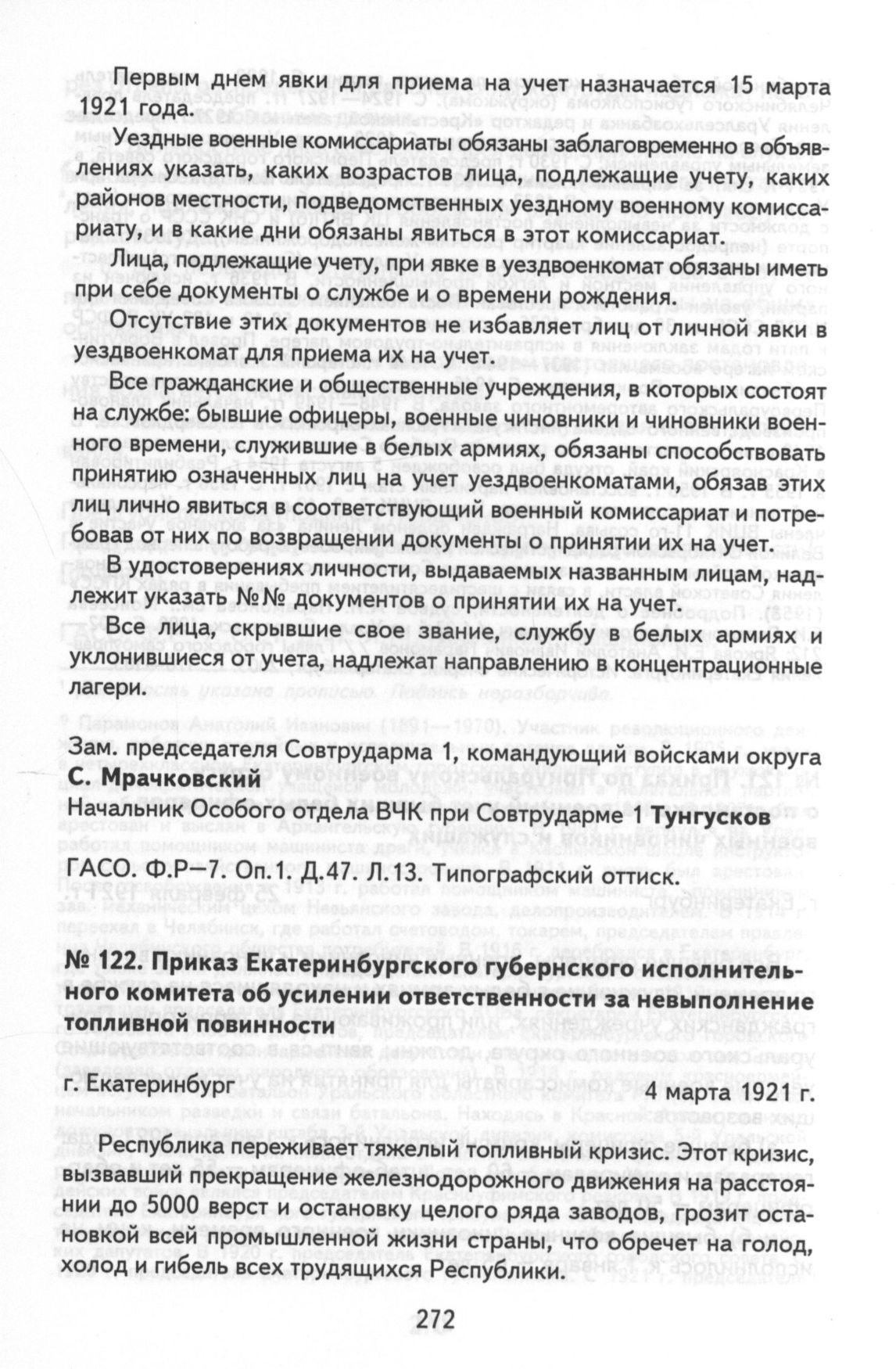 Приказ Екатеринбургского губернского исполнительного комитета об усилении ответственности за невыполнение топливной повинности. г. Екатеринбург, 4 марта 1921 г. // ГАСО. Ф. Р-7. Оп .1. Д. 47. Л. 96-97. Подлинник. Машинопись.