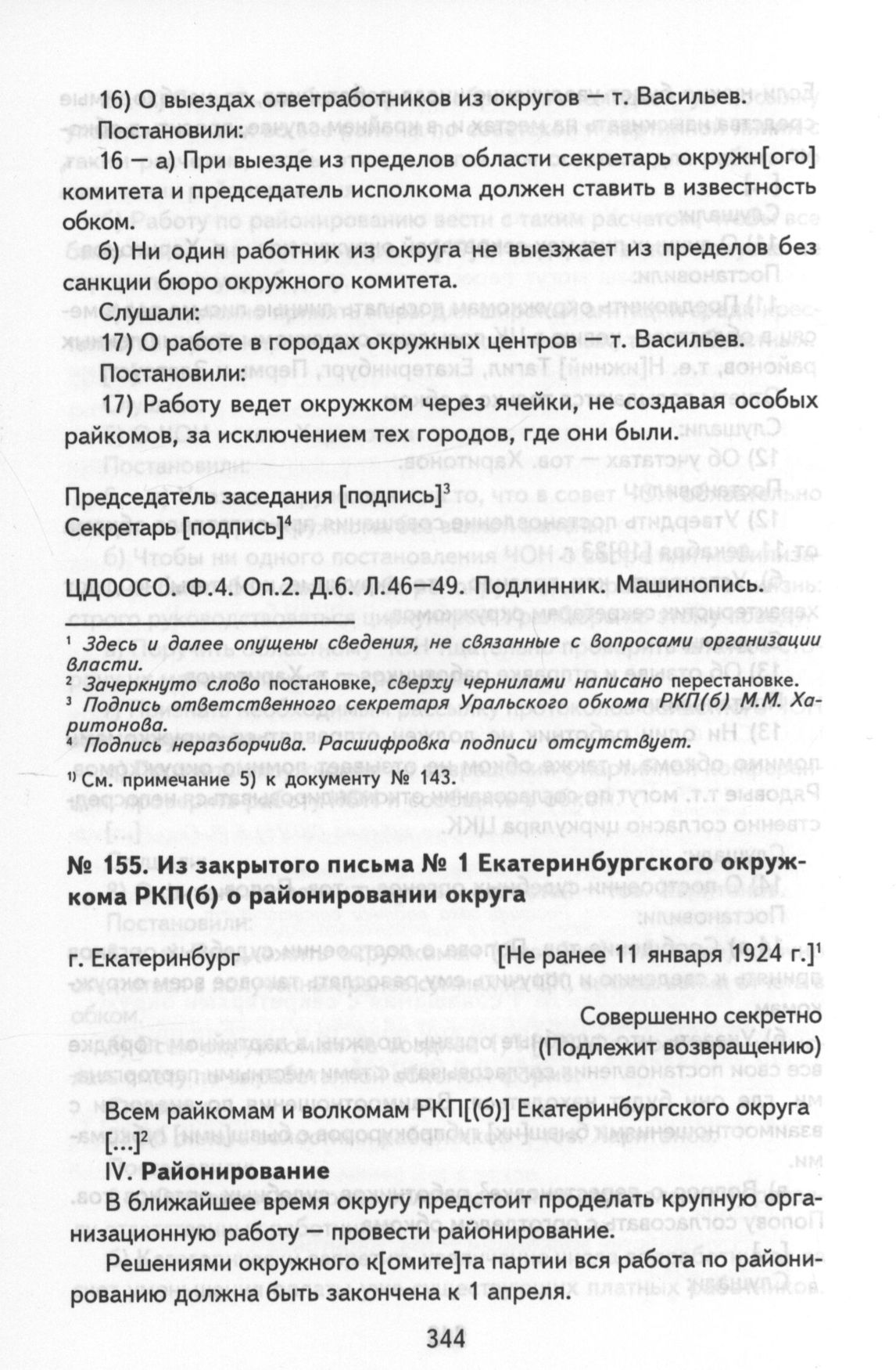 Из закрытого письма № 1 Екатеринбургского окружкома РКП(б) о районировании округа. г. Екатеринбург, не ранее 11 января 1924 г. // ЦДООСО. Ф. 6. Оп. 1. Д. 8. Л. 24. Подлинник. Машинопись.