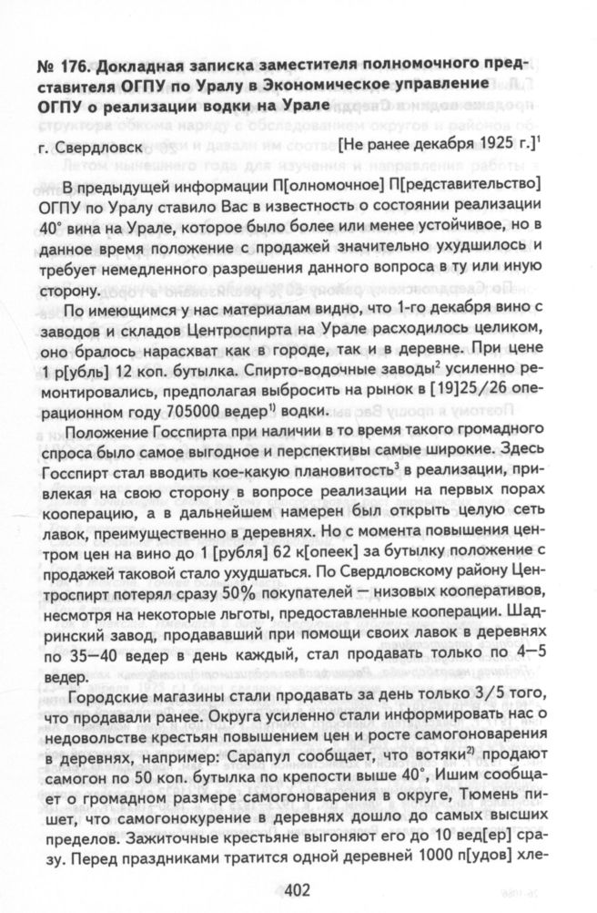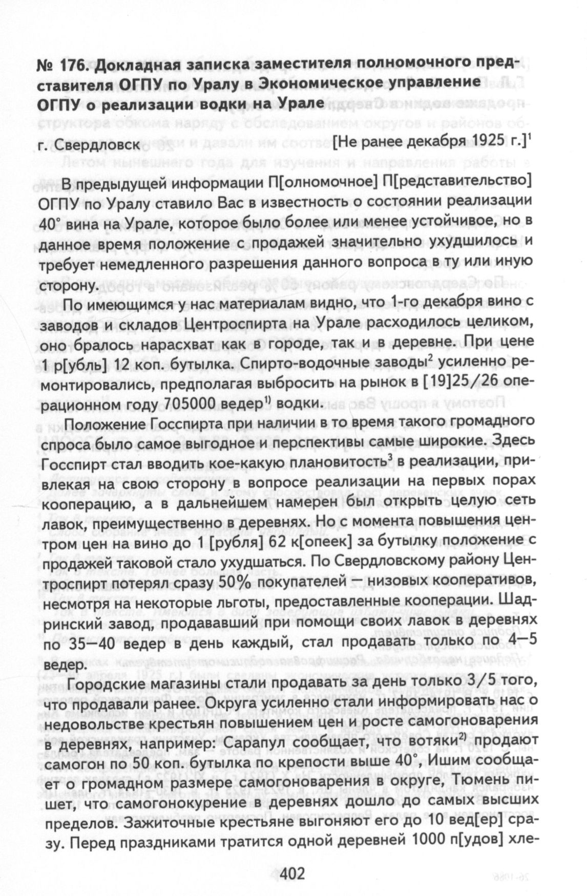 Докладная записка заместителя полномочного представителя ОГПУ по Уралу в Экономическое управление ОГПУ о реализации водки на Урале. г. Свердловск, не ранее декабря 1925 г. // ЦДООСО. Ф. 4. Оп. 4. Д. 27. Л. 127-129. Заверенная копия. Машинопись.