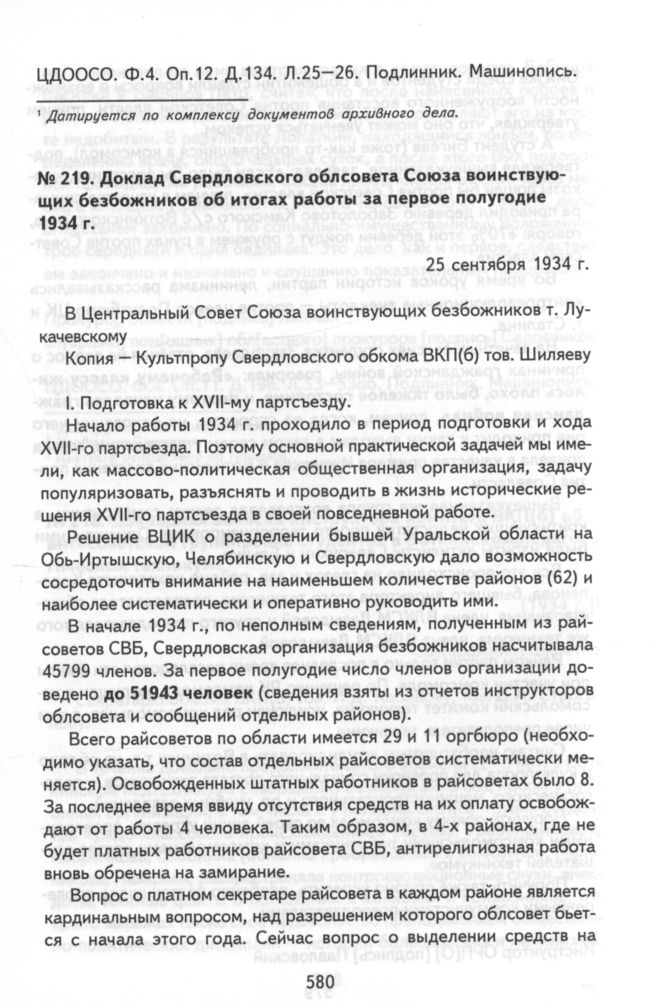 Доклад Свердловского облсовета Союза воинствующих безбожников об итогах работы за первое полугодие 1934 г. 25 сентября 1934 г. // ЦДООСО. Ф. 4. Оп. 12. Д. 227. Л. 28-31. Подлинник. Машинопись.