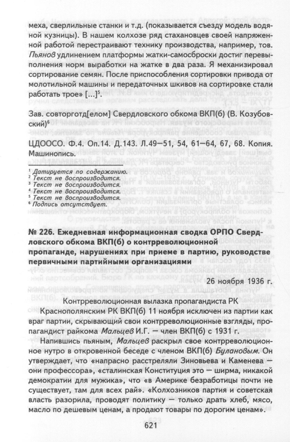 Ежедневная информационная сводка ОРПО Свердловского обкома ВКП(б) о контрреволюционной пропаганде, нарушениях при приеме в партию, руководстве первичными партийными организациями. 26 ноября 1936 г.