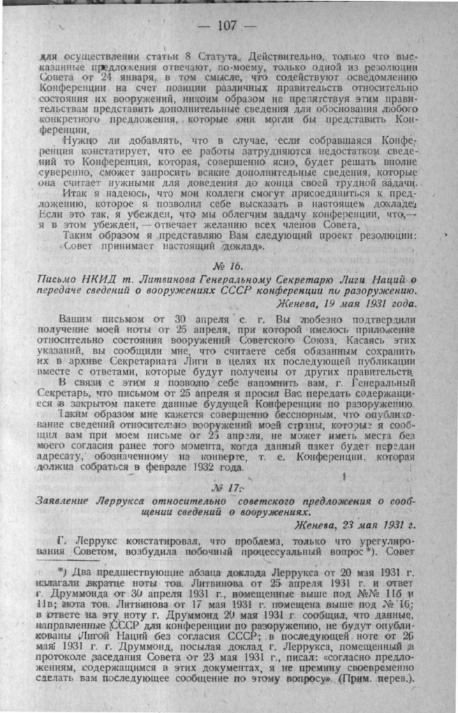 Заявление Леррукса относительно Советского предложения о сообщении сведений о вооружениях. Женева, 21 мая 1931 г.