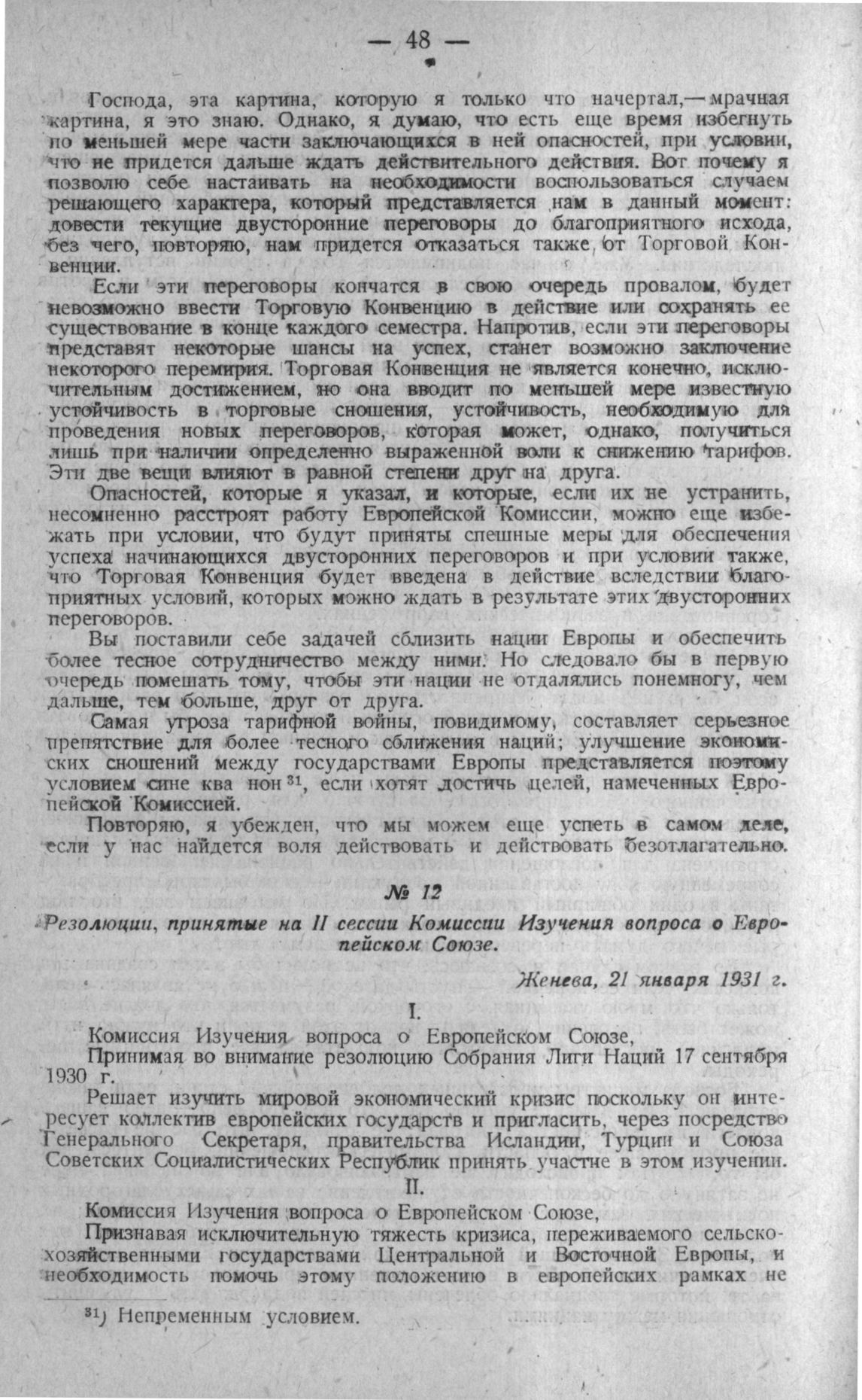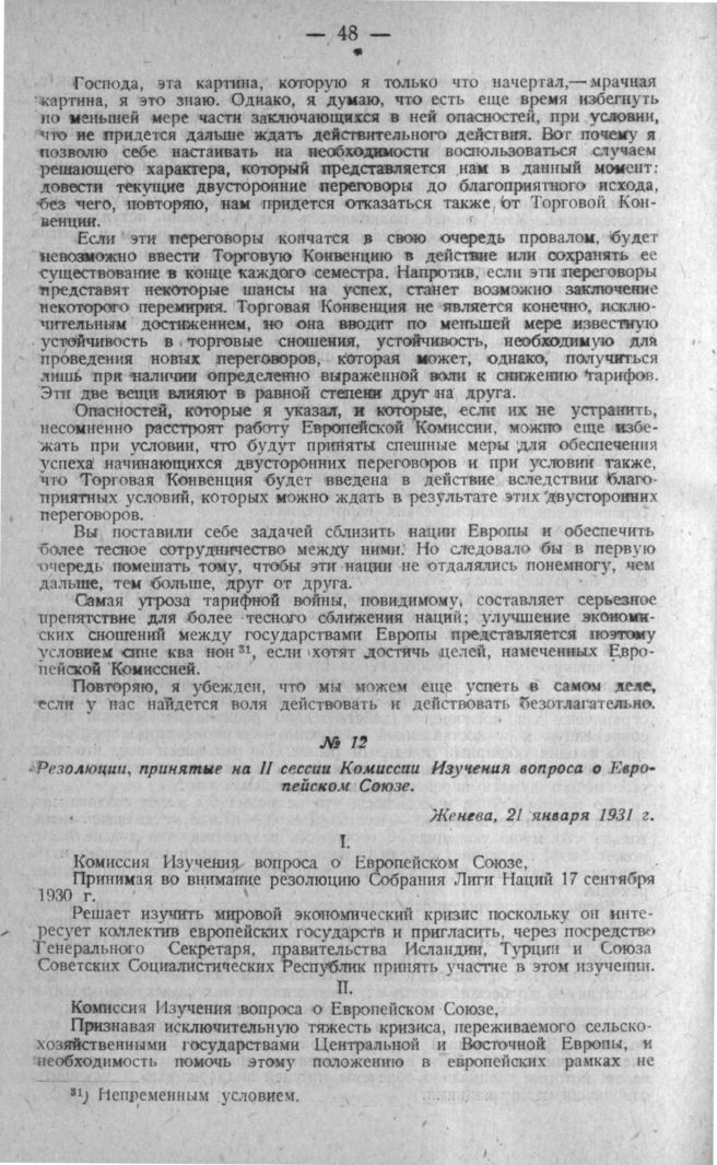 Резолюции, принятые на II сессии Комиссии Изучения вопроса о Европе...