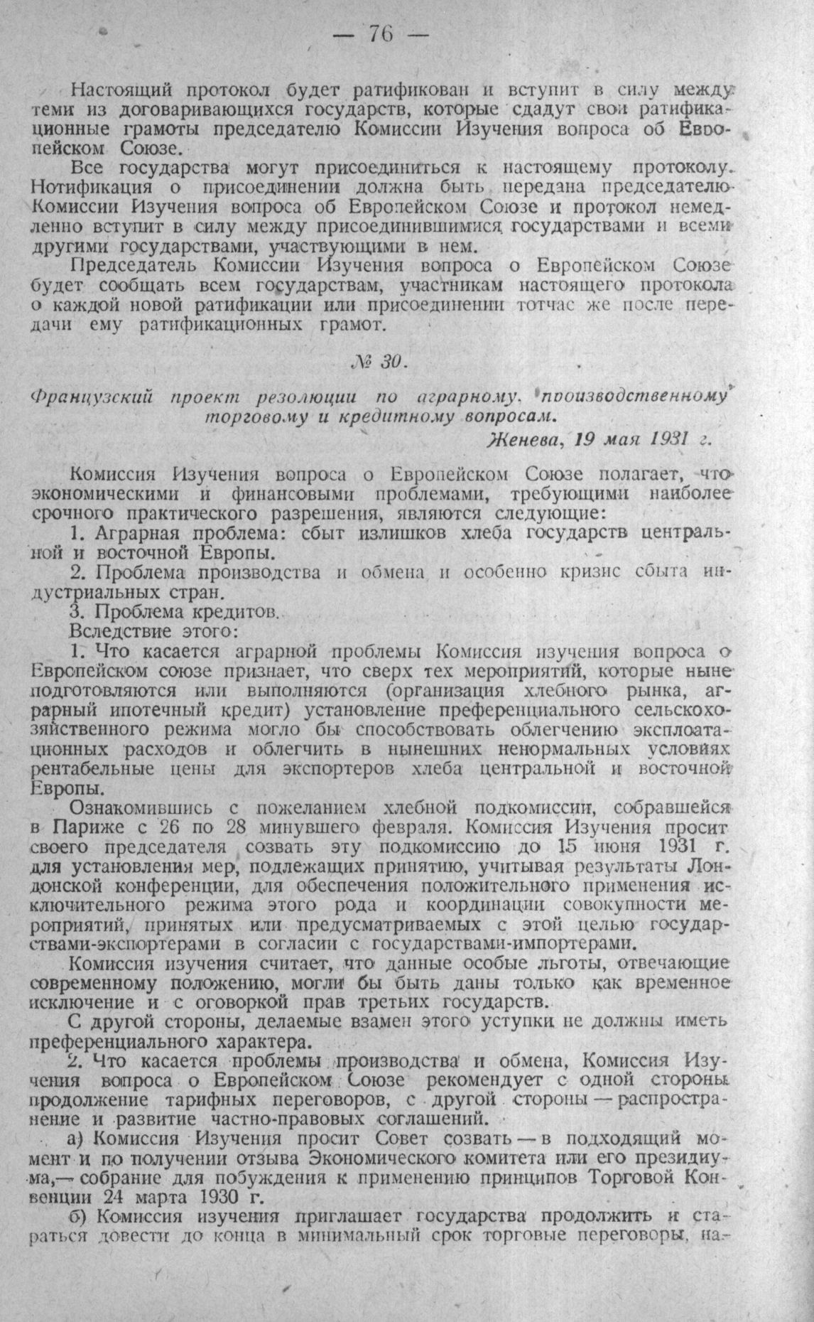 Французский проект резолюции по аграрному, производственному торговому и кредитному вопросам. Женева, 19 май 1931 г.