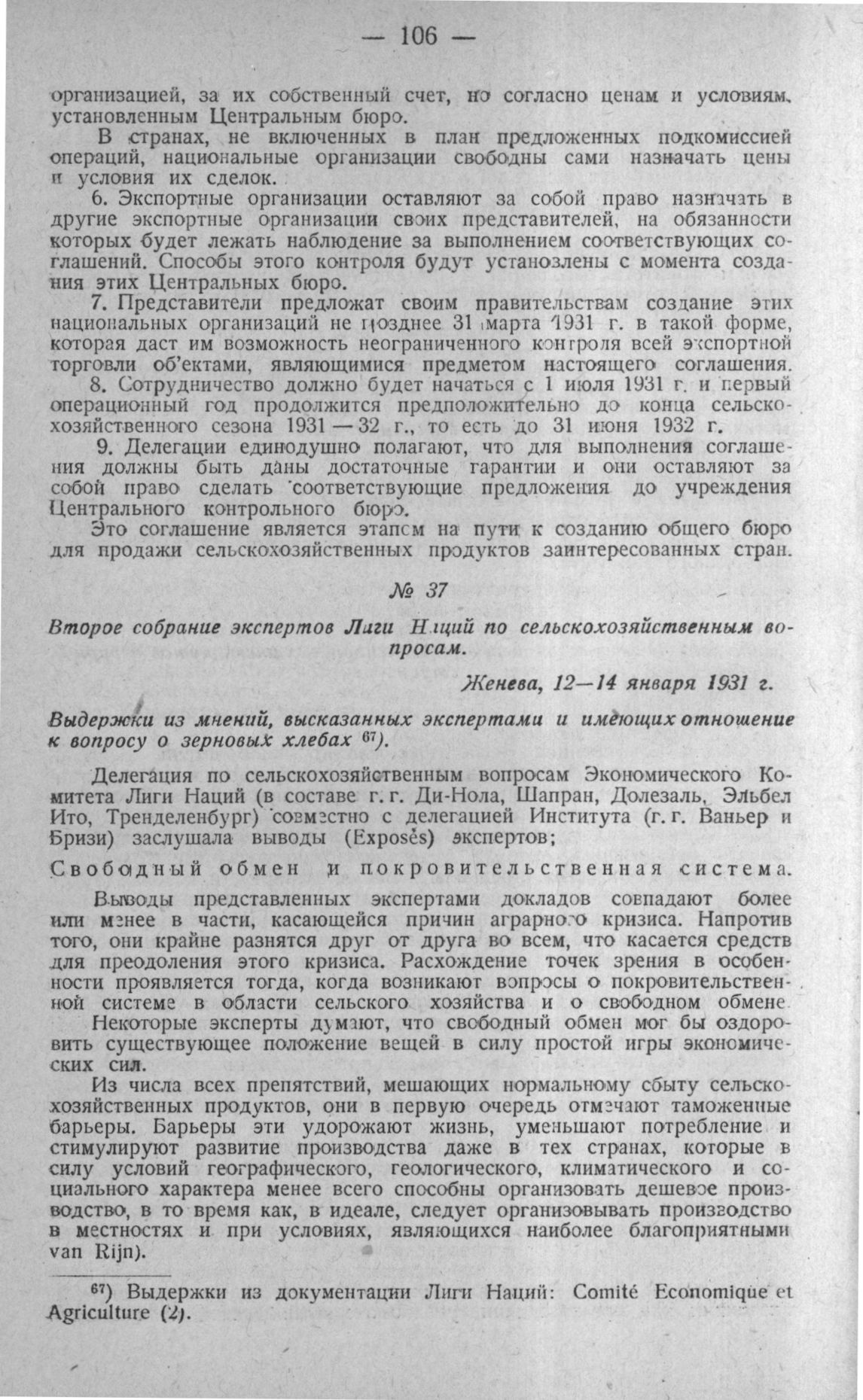 Второе собрание экспертов Лиги Наций по сельскохозяйственным вопросам. Женева, 12—14 января 1931 г.