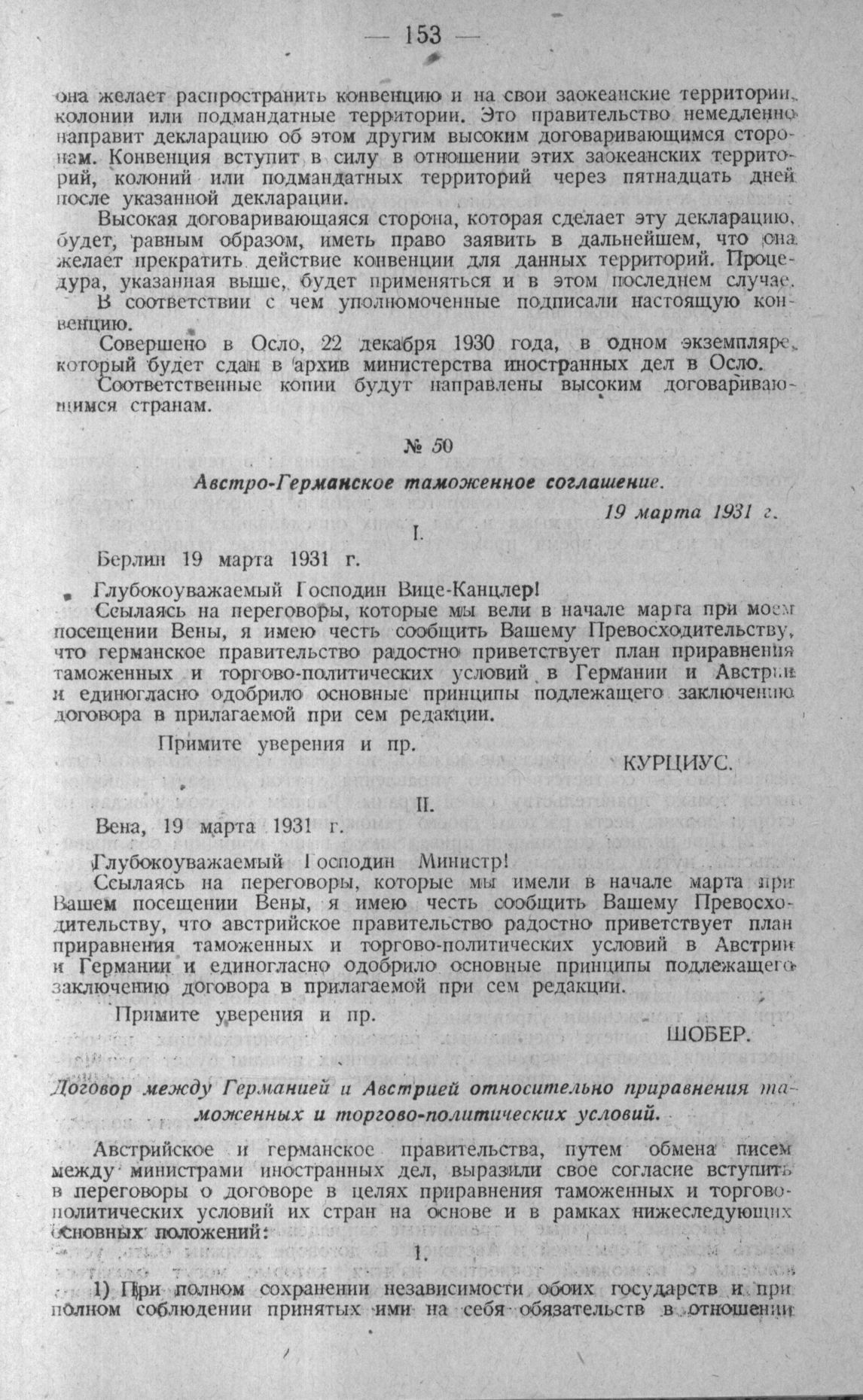 Австро-Германское таможенное соглашение. 19 марта 1931 г.