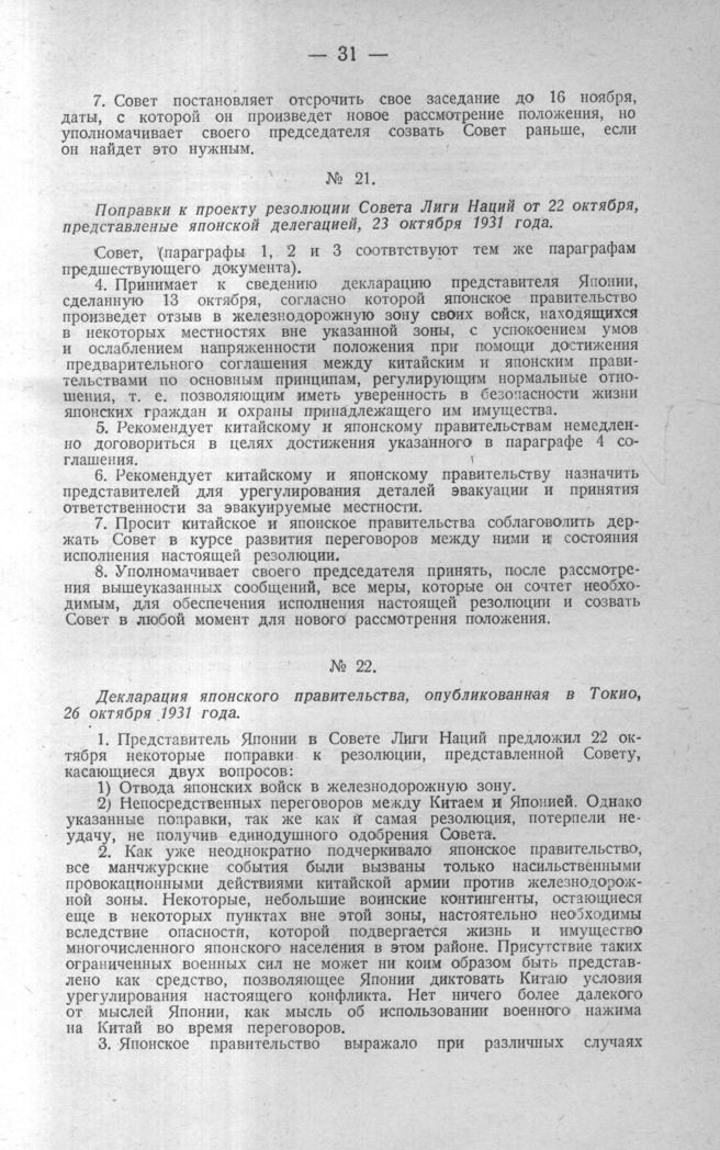 Декларация японского правительства, опубликованная в Токио, 26 октября 1931 года