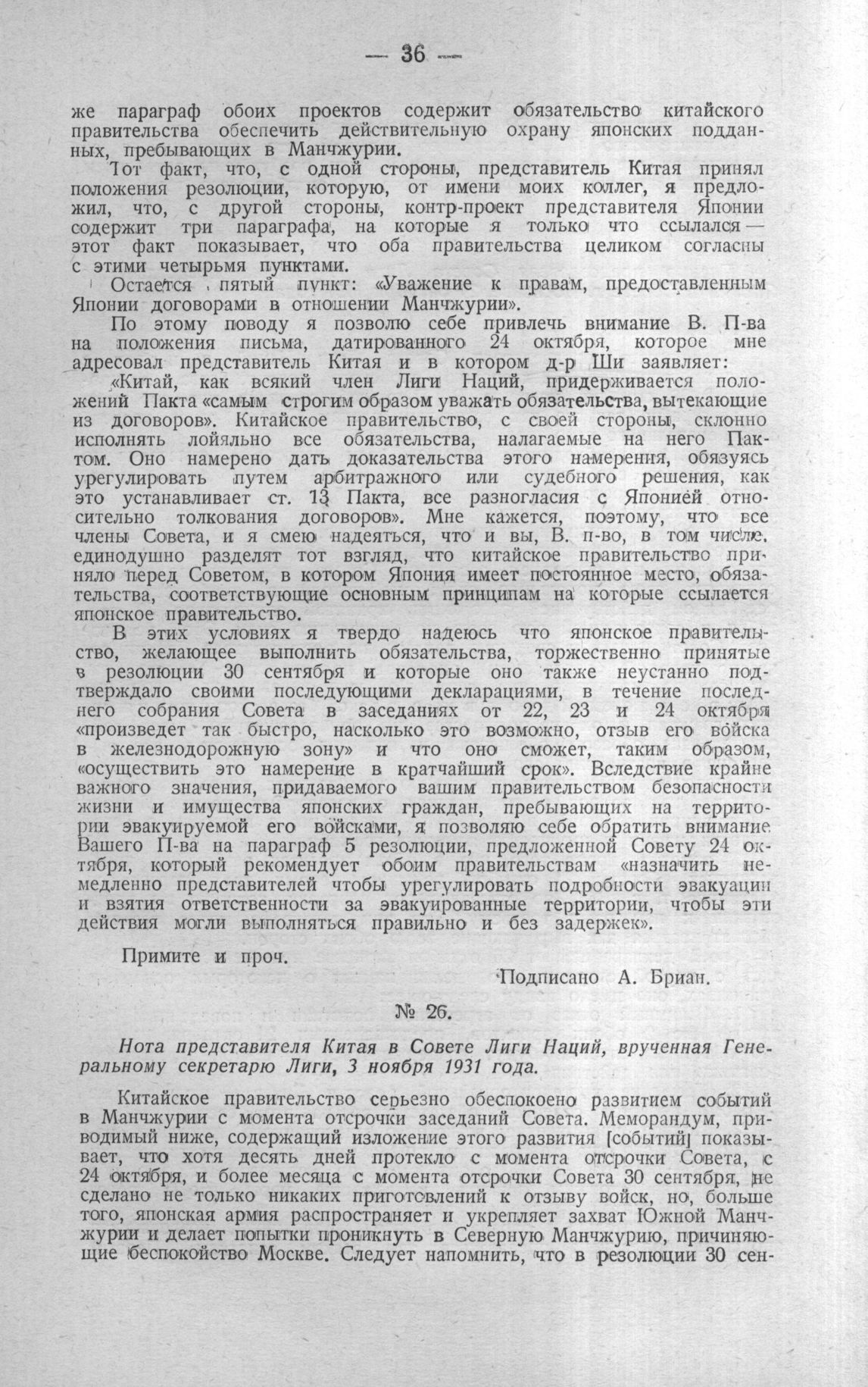 Нота представителя Китая в Совете Лиги Наций, врученная Генеральному секретарю Лиги, 3 ноября 1931 года // «Тан», 5 ноября.