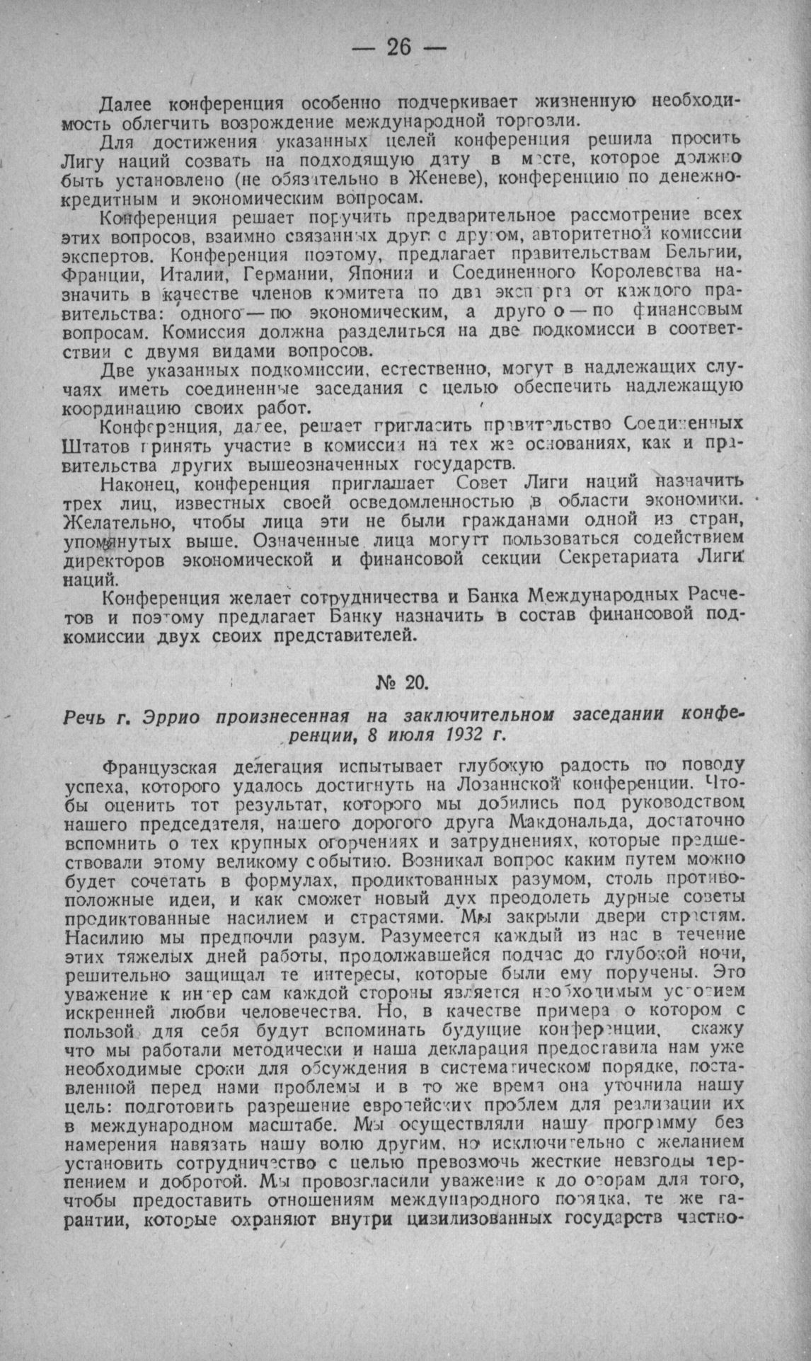 Речь г. Эррио произнесенная на заключительном заседании конференции, 8 июля 1932 г.