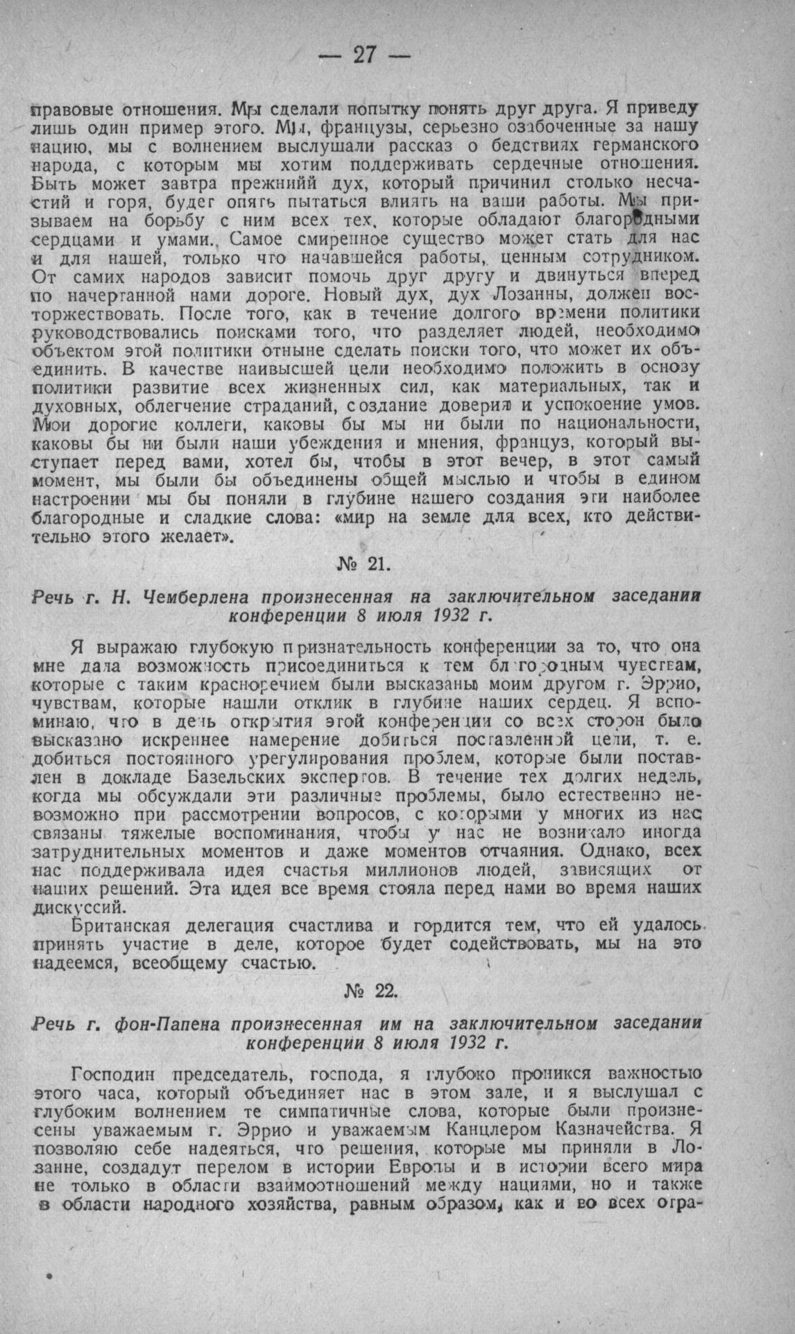 Речь г. фон-Папена произнесенная им на заключительном заседании конференции 8 июля 1932 г.