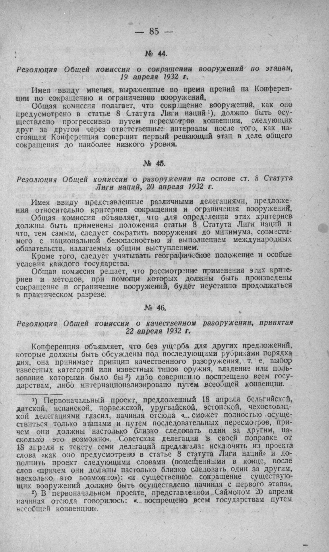 Резолюция Общей комиссии о качественном разоружении, принятая 22 ап...