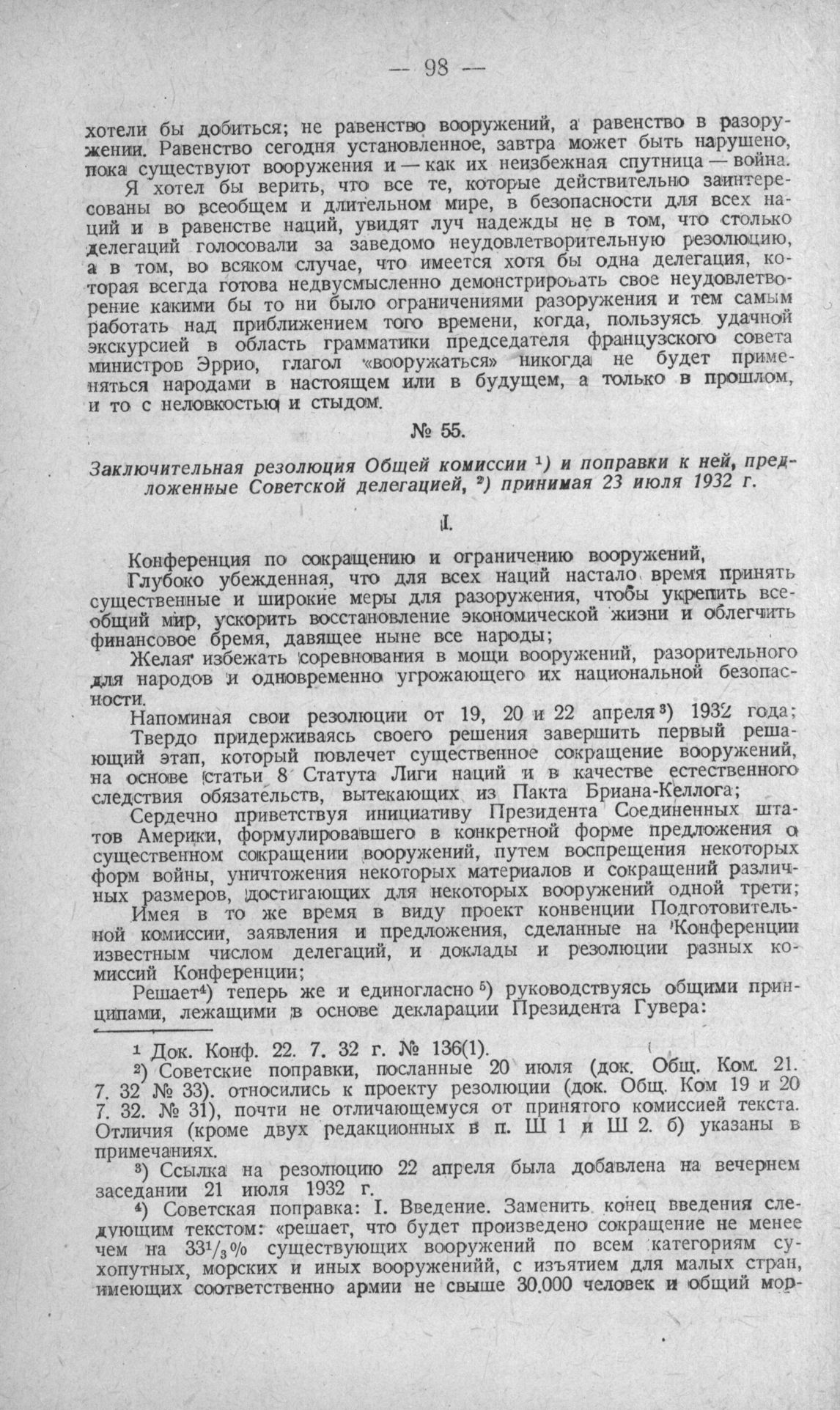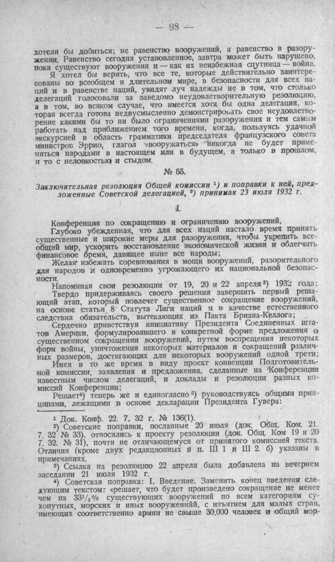 Заключительная резолюция Общей комиссии и поправки к ней, предложенные Советской делегацией, принимая 23 июля 1932 г.