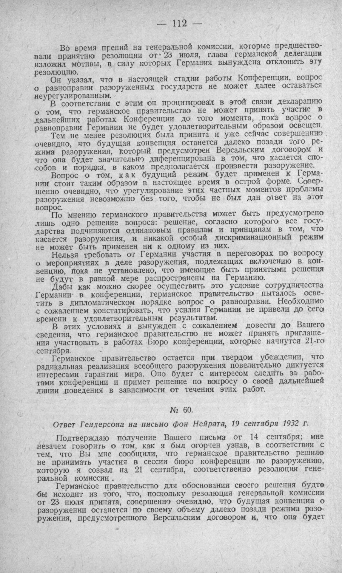 Ответ Гендерсона на письмо фон Нейрата, 19 сентября 1932 г.