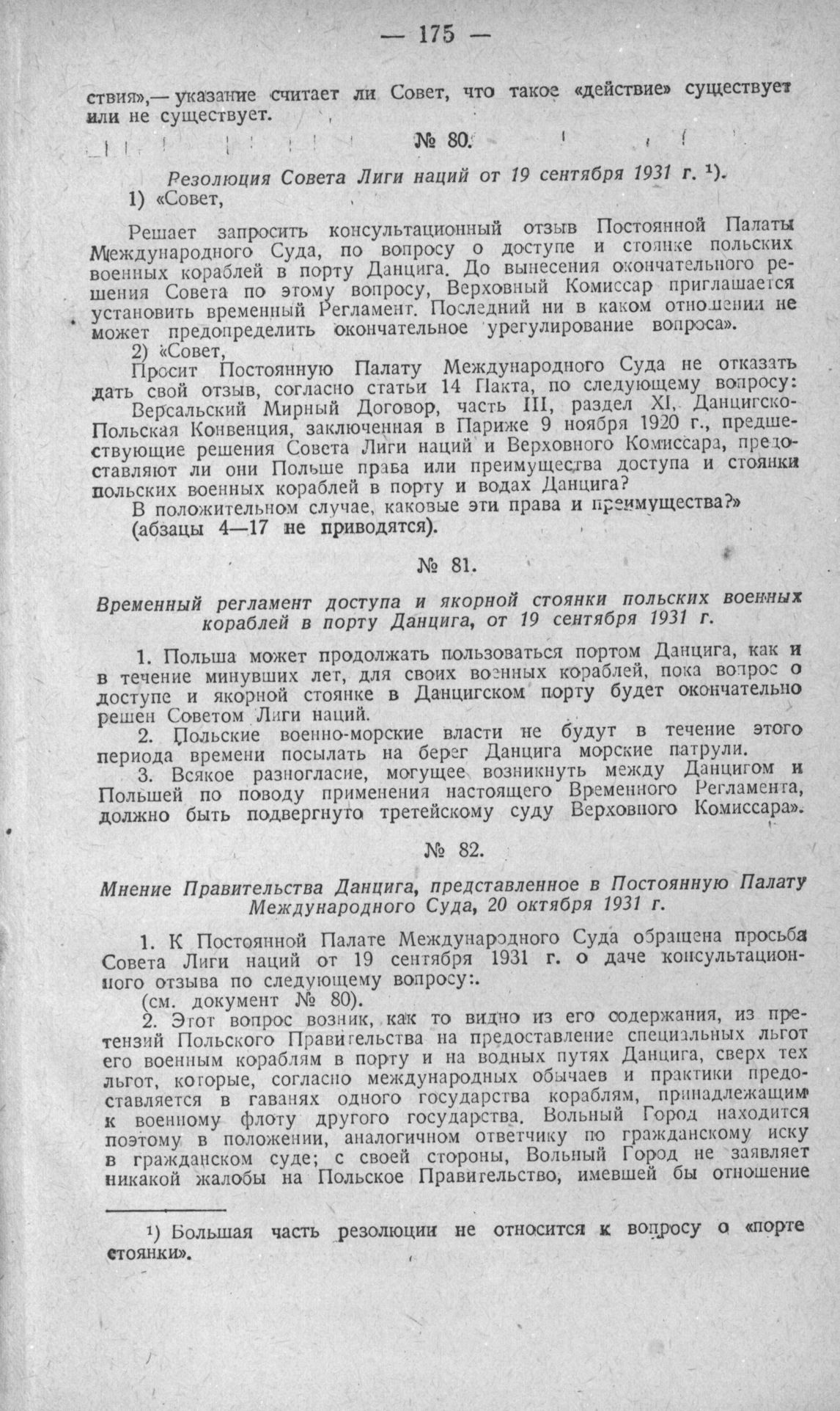Временный регламент доступа и якорной стоянки польских военных кораблей в порту Данцига, от 19 сентября 1931 г.