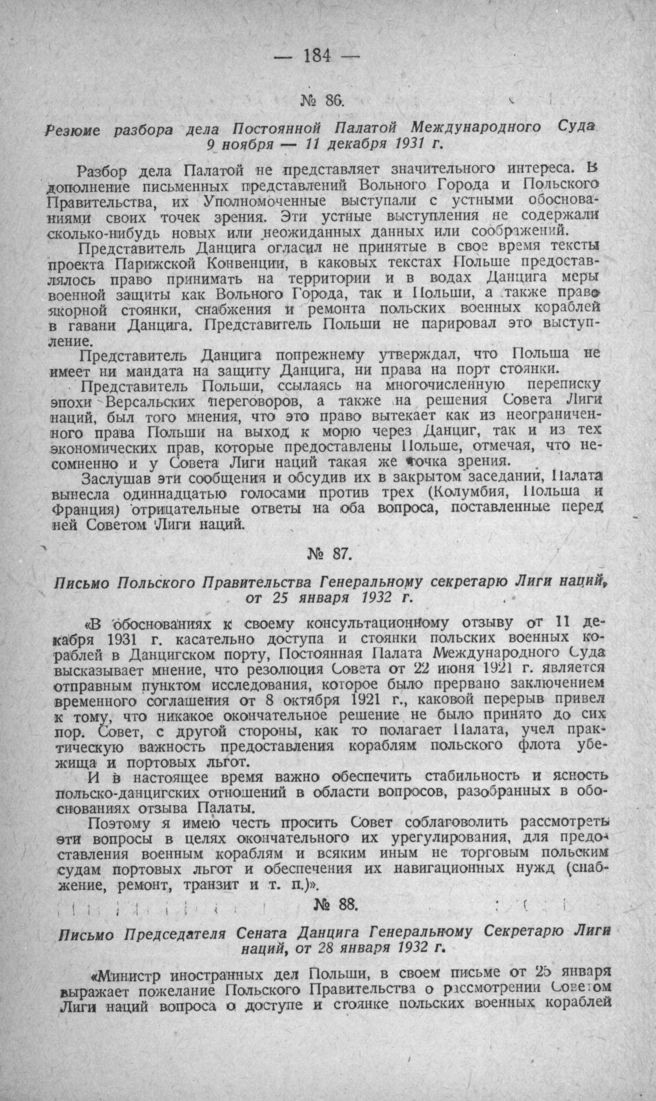 Письмо Польского Правительства Генеральному секретарю Лиги наций, от 25 января 1932 г.