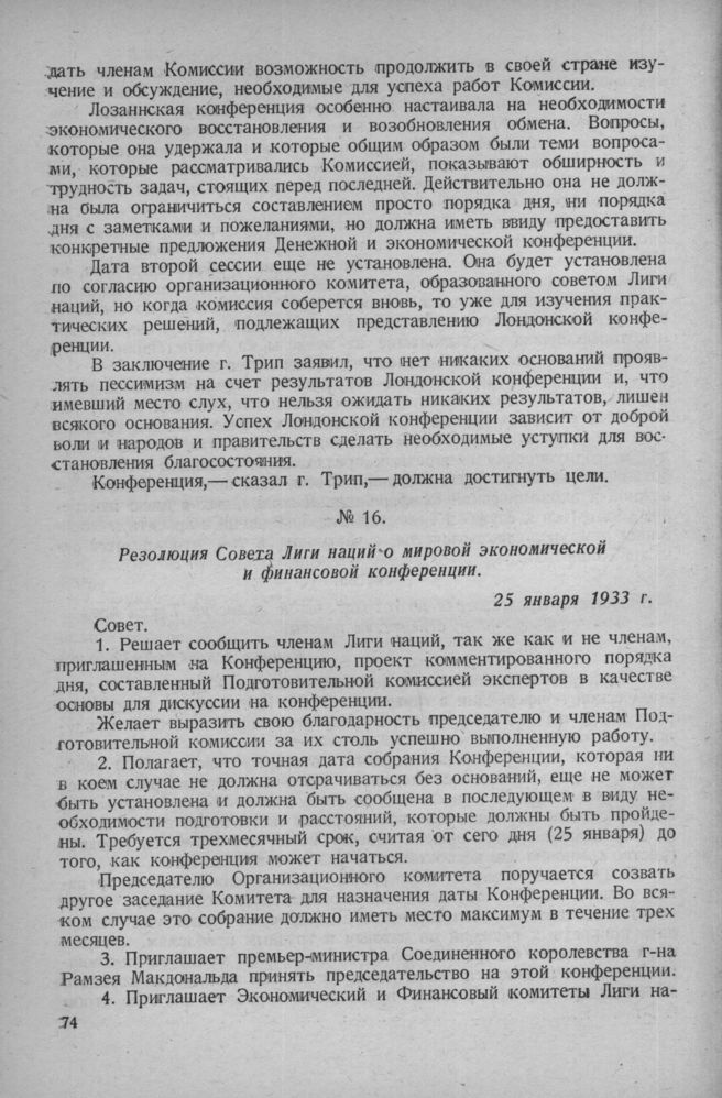 Резолюция Совета Лиги наций - о мировой экономической и финансовой ...