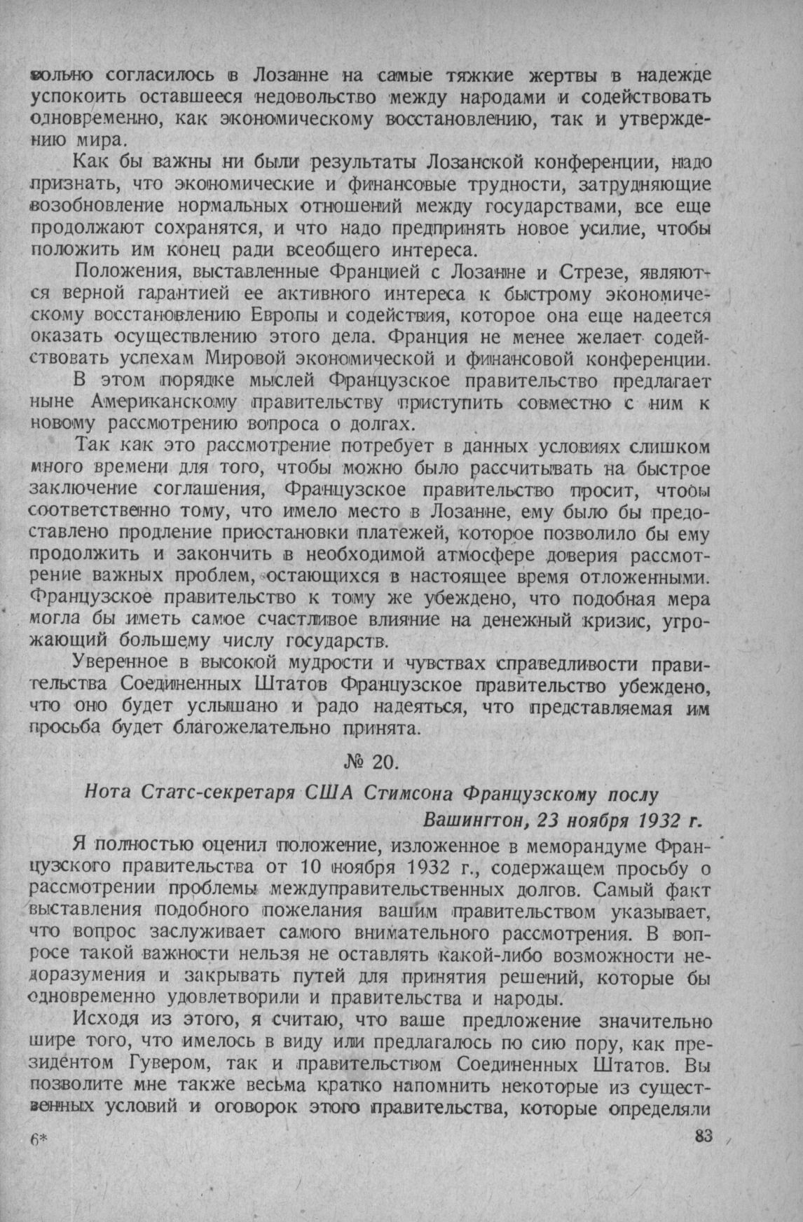 Нота Статс-секретаря США Стимсона Французскому послу. Вашингтон, 23 ноября 1932 г.