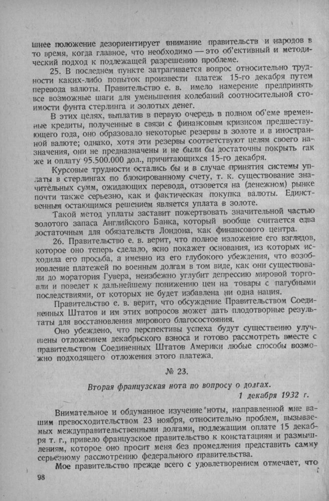 Вторая французская нота по вопросу о долгах. 1 декабря 1932 г.