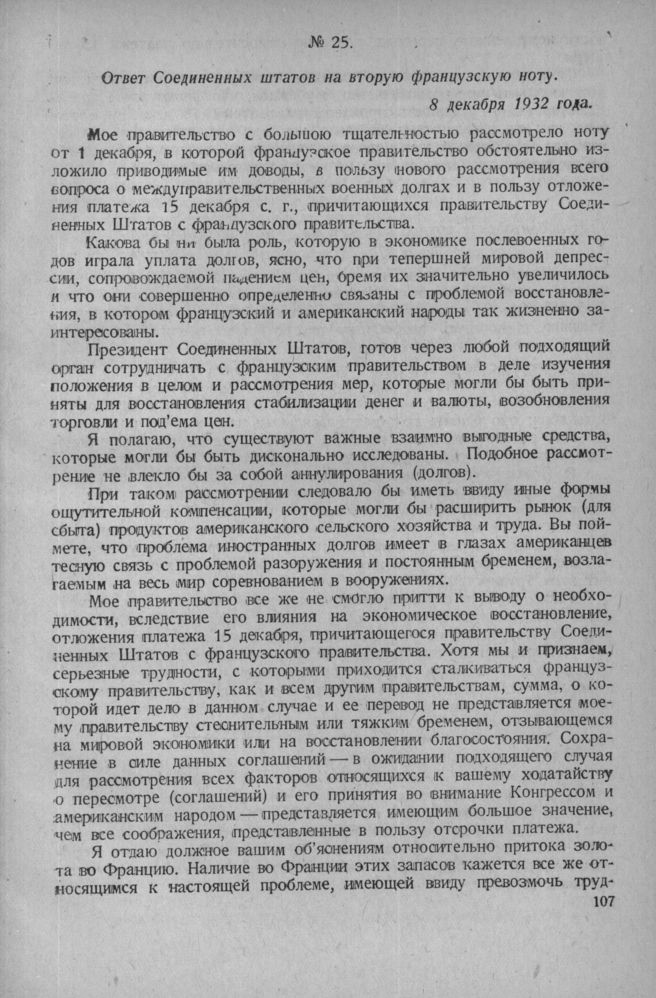 Ответ Соединенных штатов на вторую французскую ноту. 8 декабря 1932 года