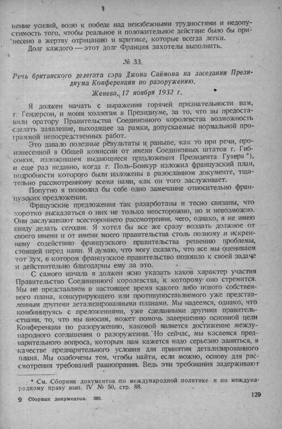 Речь британского делегата сэра Джона Саймона на заседании Президиума Конференции по разоружению. Женева,17 ноября 1932 г.