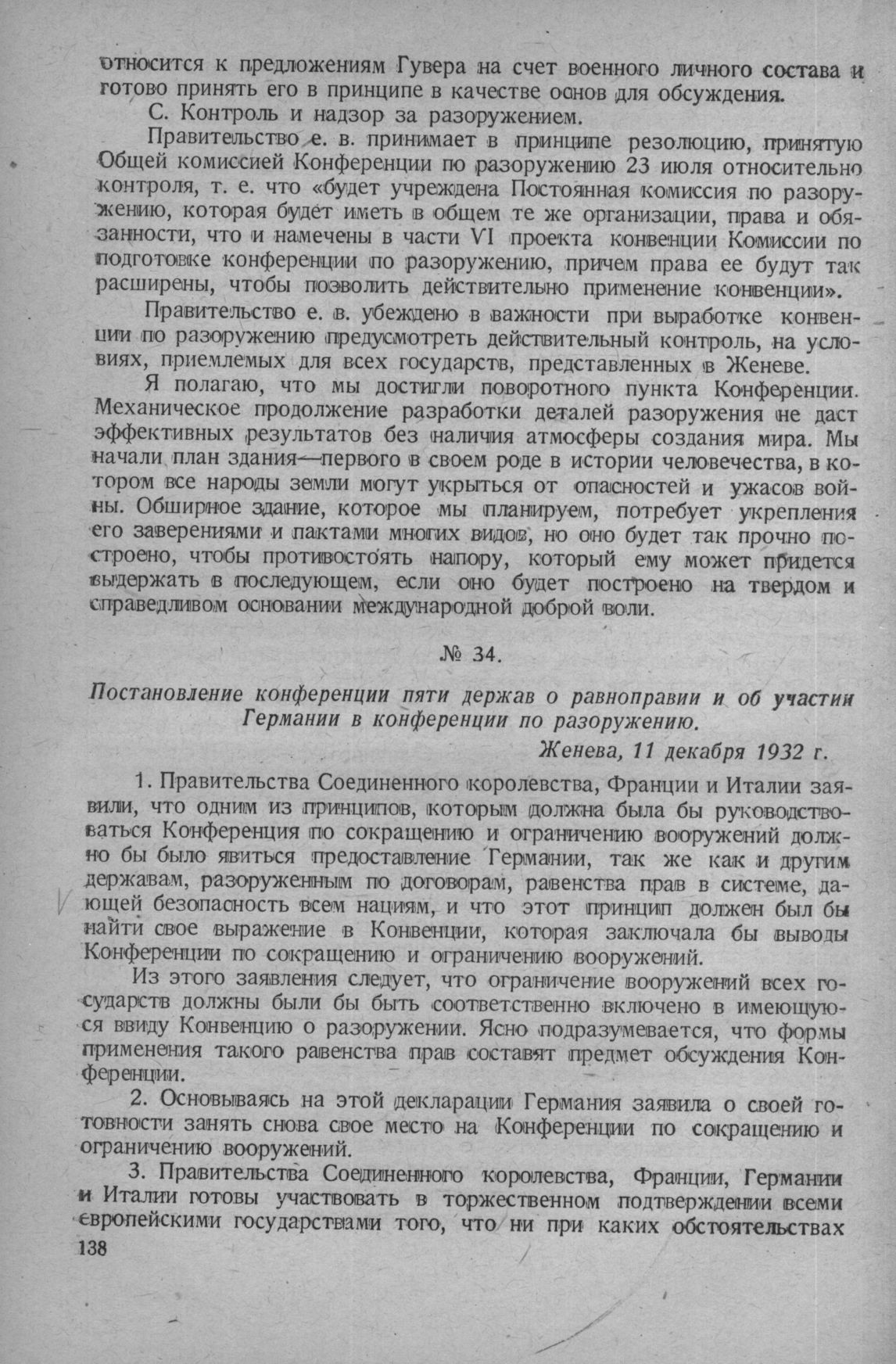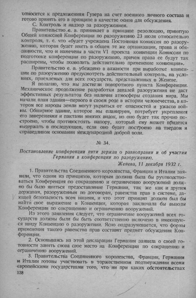 Постановление конференции пяти держав о равноправии и об участии Германии в конференции по разоружению. Женева, 11 декабря 1932 г.