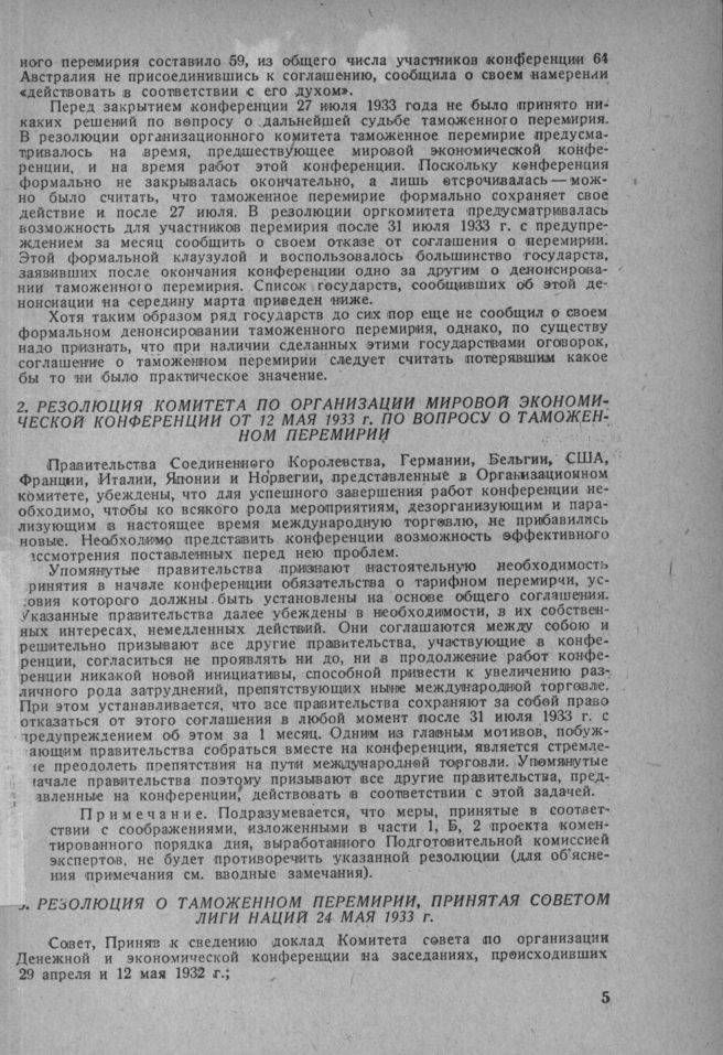 Резолюция о таможенном перемирии, принятая Советом Лиги наций 24 мая 1933 г.