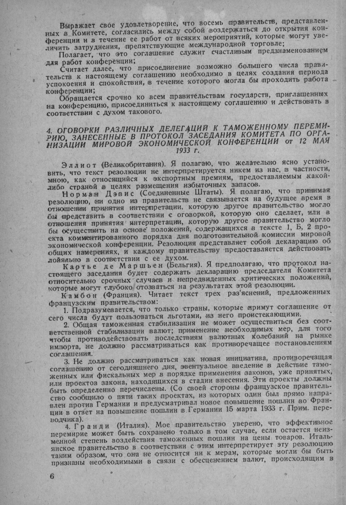 Оговорки различных делегаций к таможенному перемирию, занесенные в протокол заседания комитета по организации мировой экономической конференции от 12 мая 1933 г.