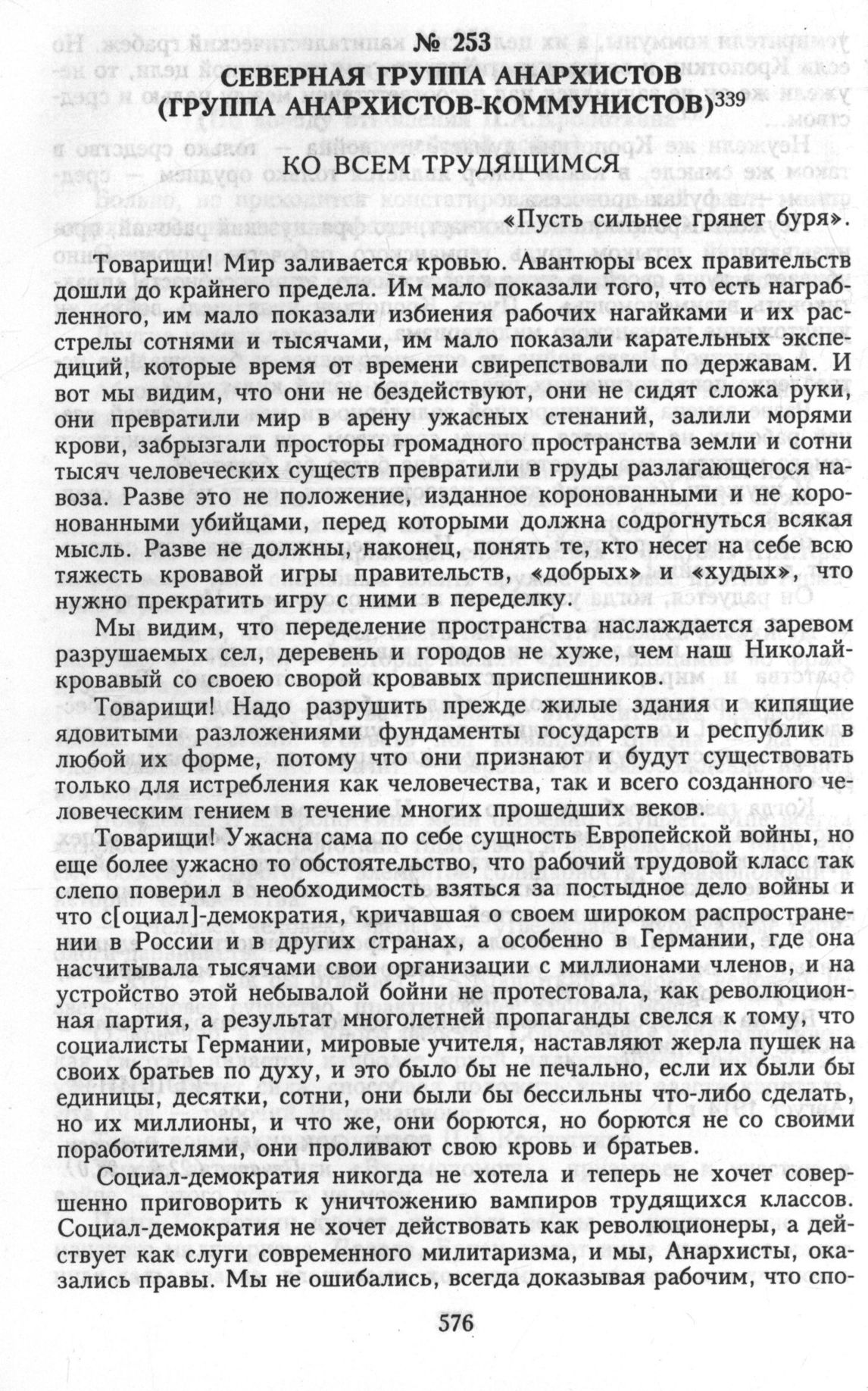 Главная Серия «Политические партии России. Конец XIX – первая треть ХХ века... Анархисты. Документы и материалы. 1883—1935 гг. В 2 тт. Анархисты. Документы и материалы. 1883—1935 гг. В 2 тт. Т. 1. 1883—... Документы Северная группа анархистов (группа анархистов-коммунистов). Ко всем...