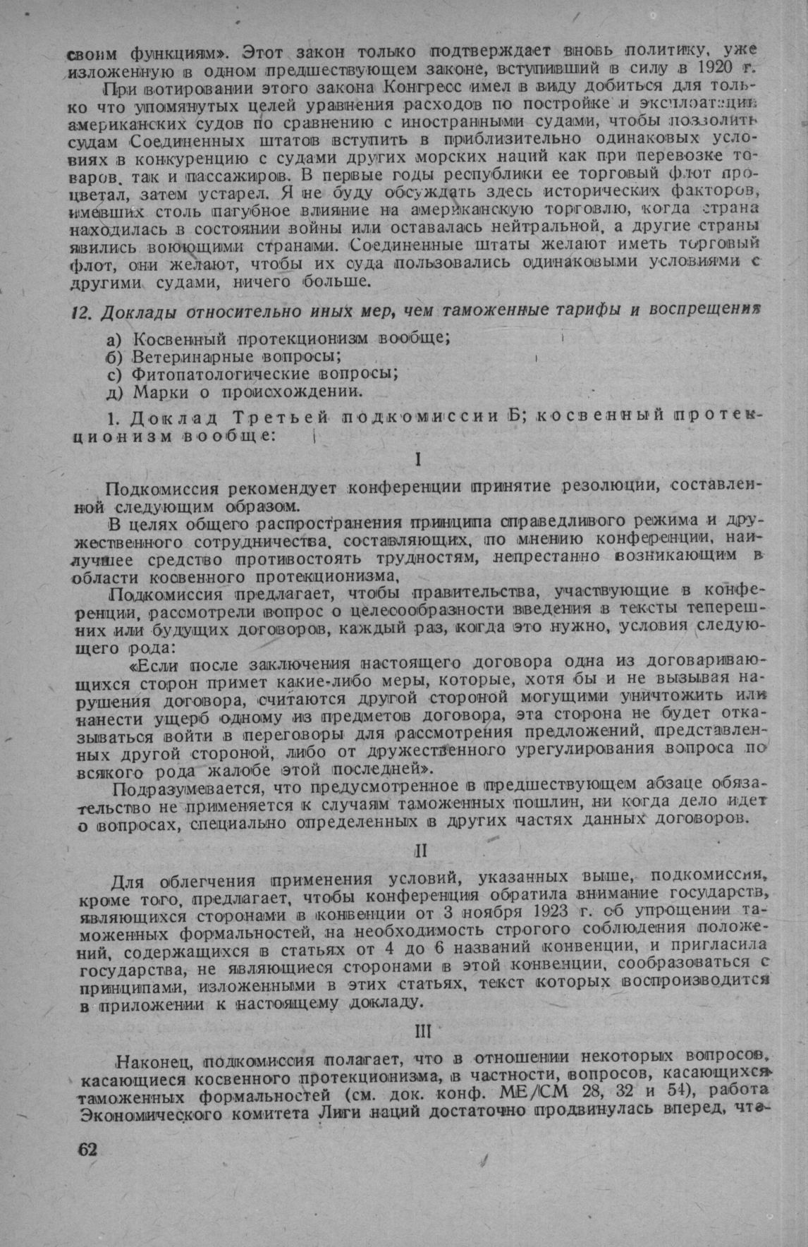 Отчет мировой денежной и экономической конференции. 12. Доклады относительно иных мер, чем таможенные тарифы и воспрещения