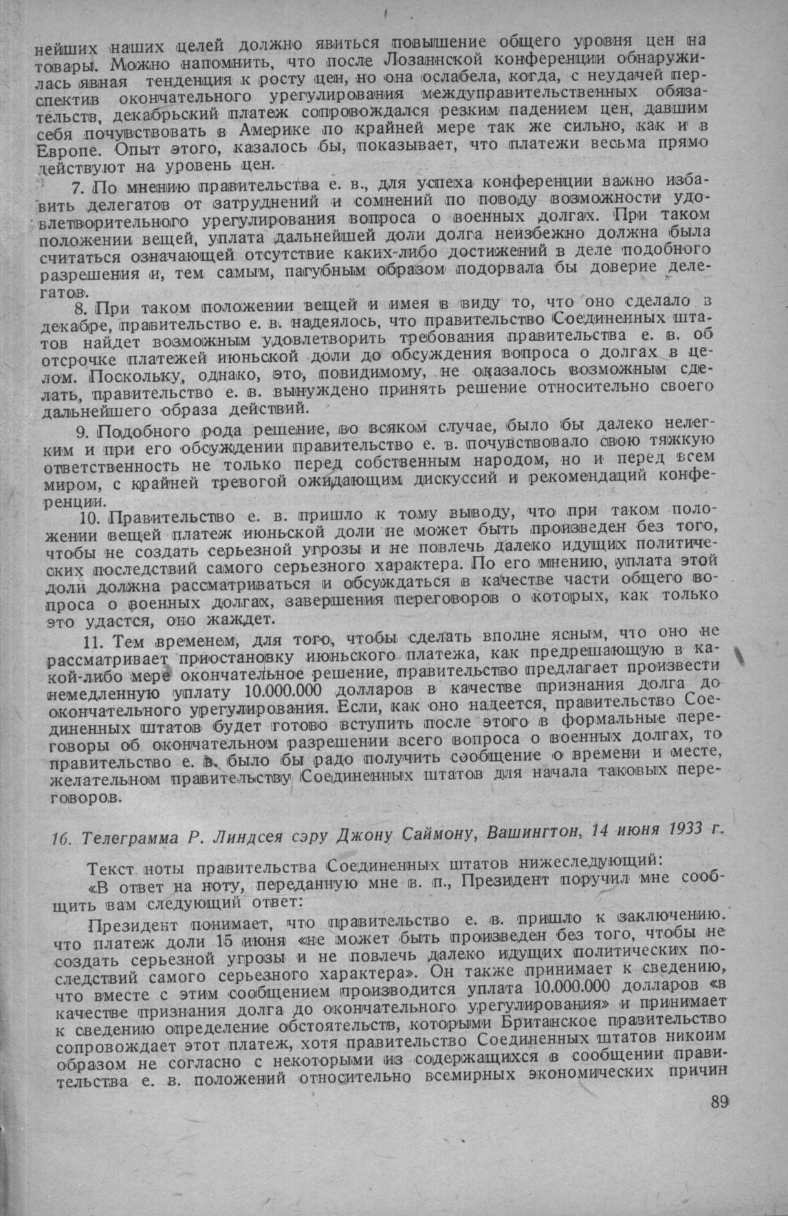 Телеграмма Р. Линдсея сэру Джону Саймону, Вашингтон, 14 июня 1933 г.