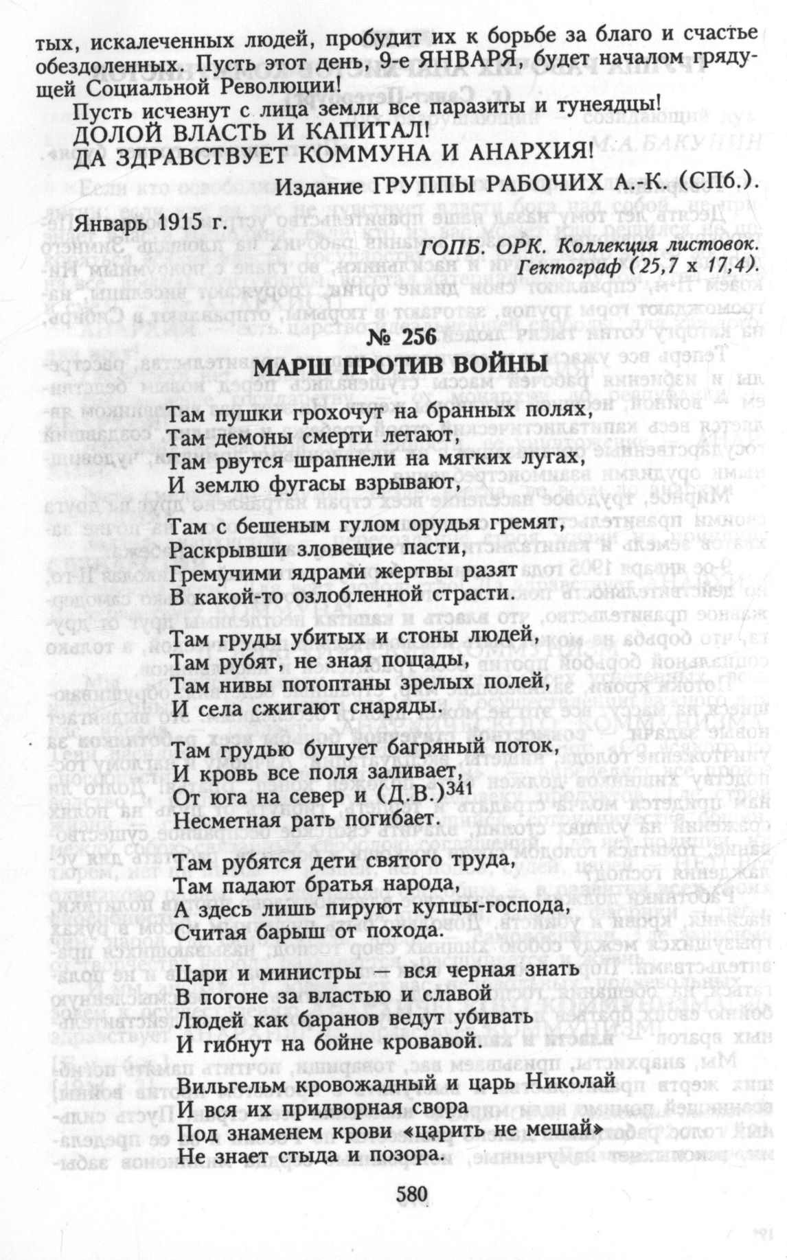 Марш против войны // ГОПБ. ОРК. Коллекция листовок. Машинописная копия.