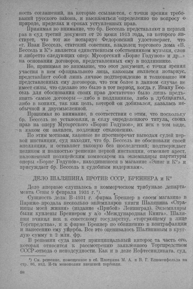 Дело Шаляпина против СССР, Бреннера и К°. Трибунал департамента Сены 9 февраля 1931 г.