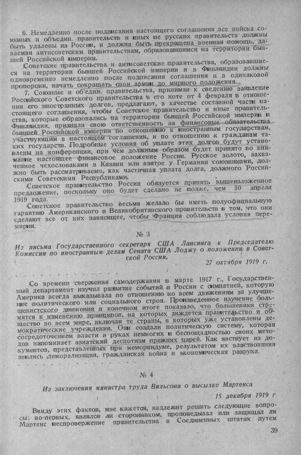 Из заключения министра труда Вильсона о высылке Мартенса. 15 декабря 1919 г.
