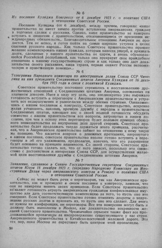 Из послания Кулиджа Конгрессу от 6 декабря 1923 г. о политике США в отношении Советской России