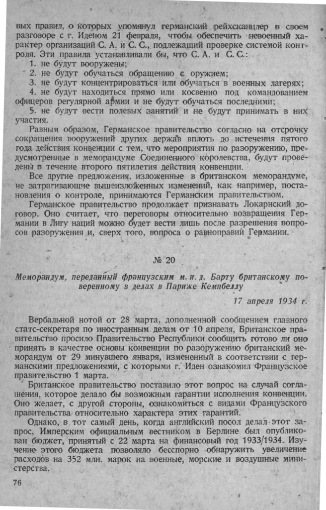 Меморандум, переданный французским м. и. д. Барту британскому поверенному в делах в Париже Кемпбеллу. 17 апреля 1934 г.