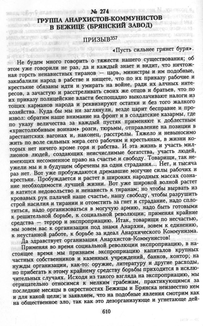 Главная Серия «Политические партии России. Конец XIX – первая треть ХХ века... Анархисты. Документы и материалы. 1883—1935 гг. В 2 тт. Анархисты. Документы и материалы. 1883—1935 гг. В 2 тт. Т. 1. 1883—... Документы Группа анархистов-коммунистов в Бежице (Брянский завод). Призыв ...
