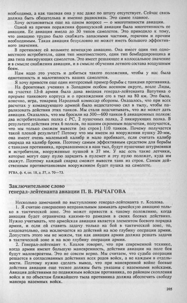 Материалы совещания высшего руководящего состава РККА 23-31 декабря 1940 г. Заключительное слово генерал-лейтенанта авиации П.В. Рычагова // РГВА, ф. 4, оп. 18, д. 57, л. 74—81.