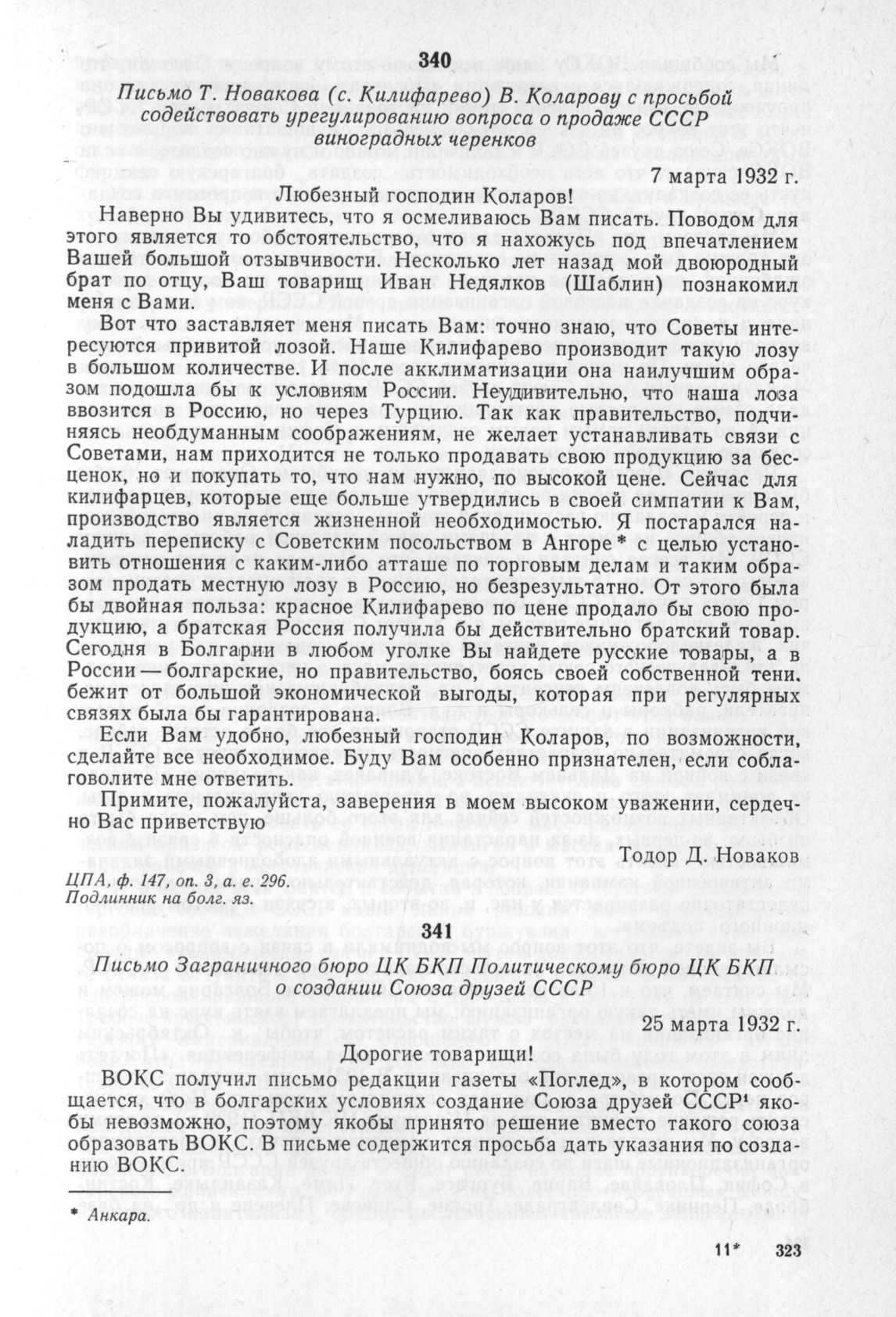 Письмо Заграничного бюро ЦК БКП Политическому бюро ЦК БКП о создании Союза друзей СССР. 25 марта 1932 г. // ЦПА, ф. 3, оп. 4, а. е. 347, лл. 23—25. Подлинник на болг. яз.