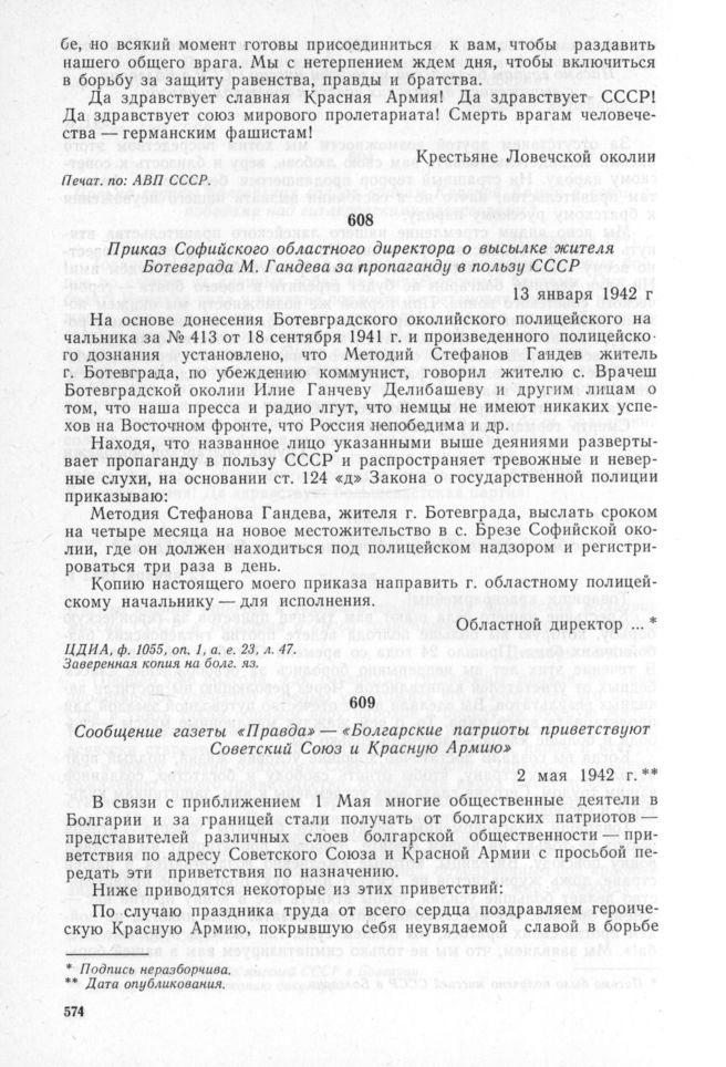 Сообщение газеты «Правда» — «Болгарские патриоты приветствуют Советский Союз и Красную Армию». 2 мая 1942 г. // «Правда», 2 мая 1942 г.