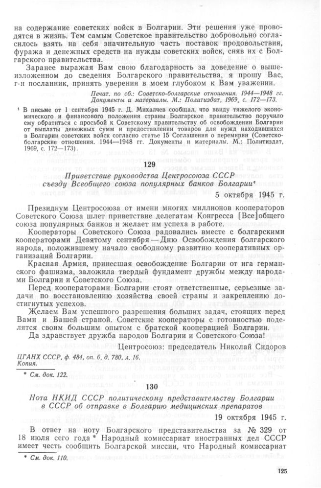 Нота НКИД СССР политическому представительству Болгарии в СССР об отправке в Болгарию медицинских препаратов. 19 октября 1945 г. // Печат. по: АВП СССР. АМВнР на НРБ.