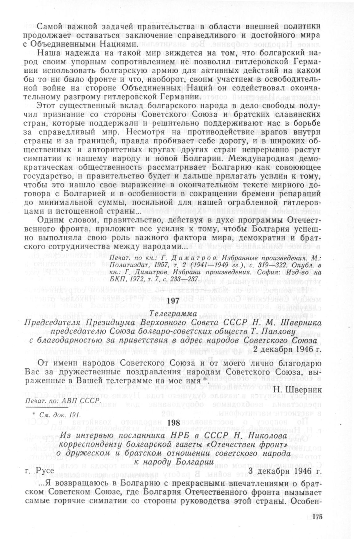 Из интервью посланника НРБ в СССР Н. Николова корреспонденту болгарской газеты «Отечествен фронт» о дружеском и братском отношении советского народа к народу Болгарии. г. Русе. 3 декабря 1946 г. // Отечествен фронт, 4 декабря 1946 г.