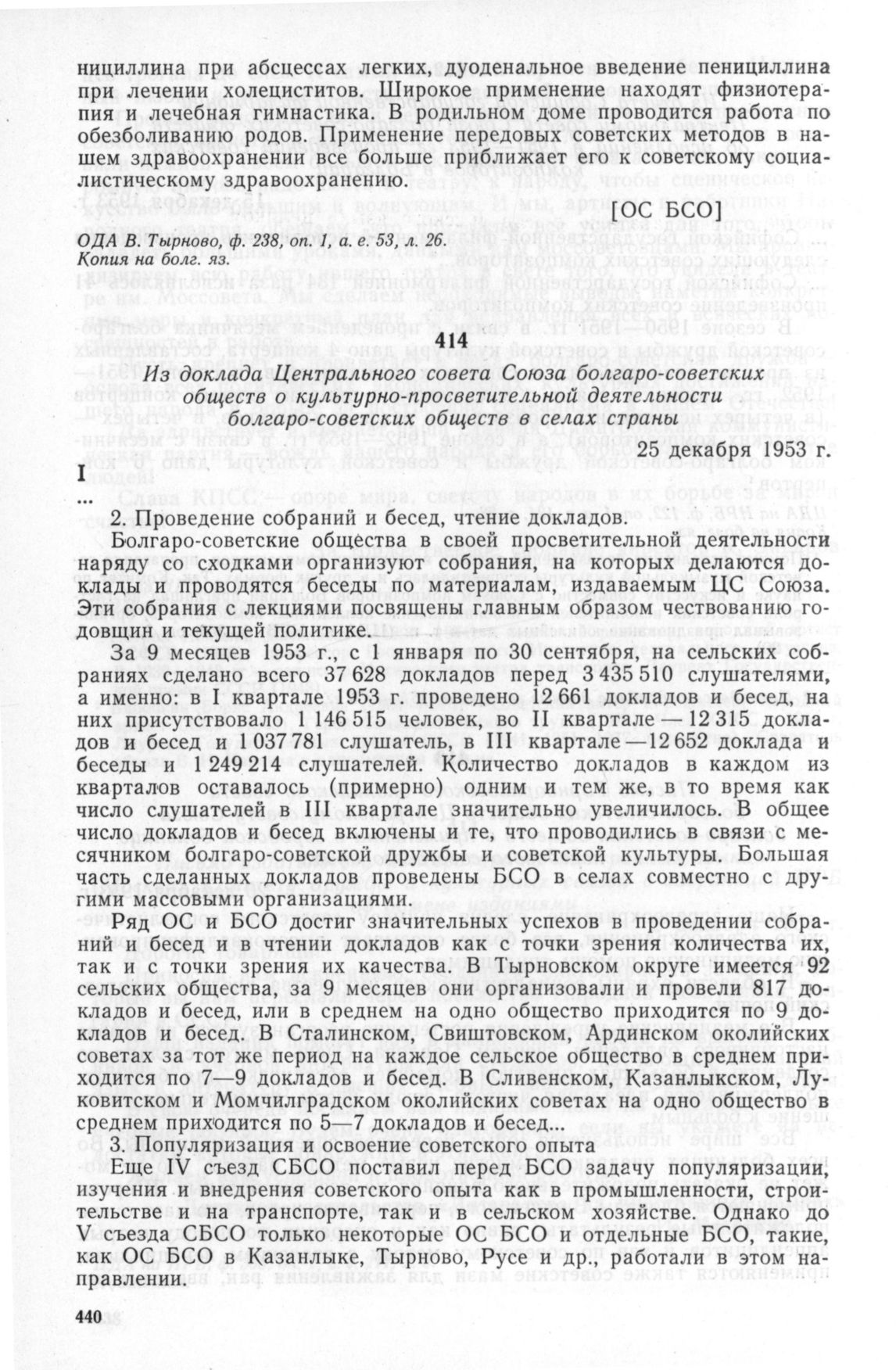 Из доклада Центрального совета Союза болгаро-советских обществ о культурно-просветительной деятельности болгаро-советских обществ в селах страны. 25 декабря 1953 г. // СГОДА, ф. 930, оп. 1, а. е. 11, лл. 4—13. Копия на болг. яз.