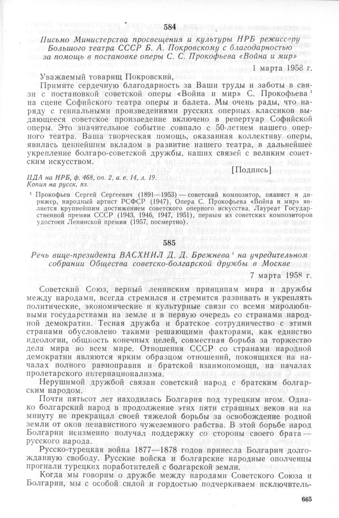Речь вице-президента ВАСХНИЛ Д.Д. Брежнева на учредительном собрании Общества советско-болгарской дружбы в Москве. 7 марта 1958 г.