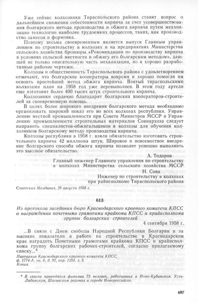 Из протокола заседания бюро Краснодарского краевого комитета КПСС о награждении почетными грамотами крайкома КПСС и крайисполкома группы болгарских строителей. 4 сентября 1958 г. // Партархив Краснодарского краевого комитета КПСС, ф. 1774-А, оп. 6, д. 92, кор. 1253, л. 5. Копия.