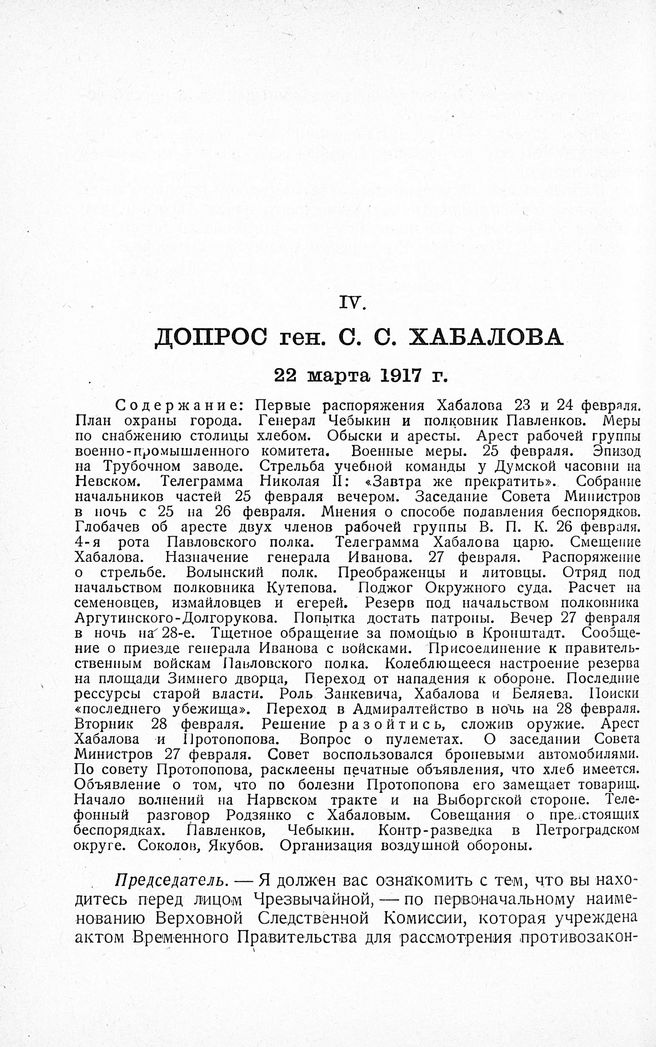 Допрос ген. С. С. Хабалова. 22 марта 1917 г.