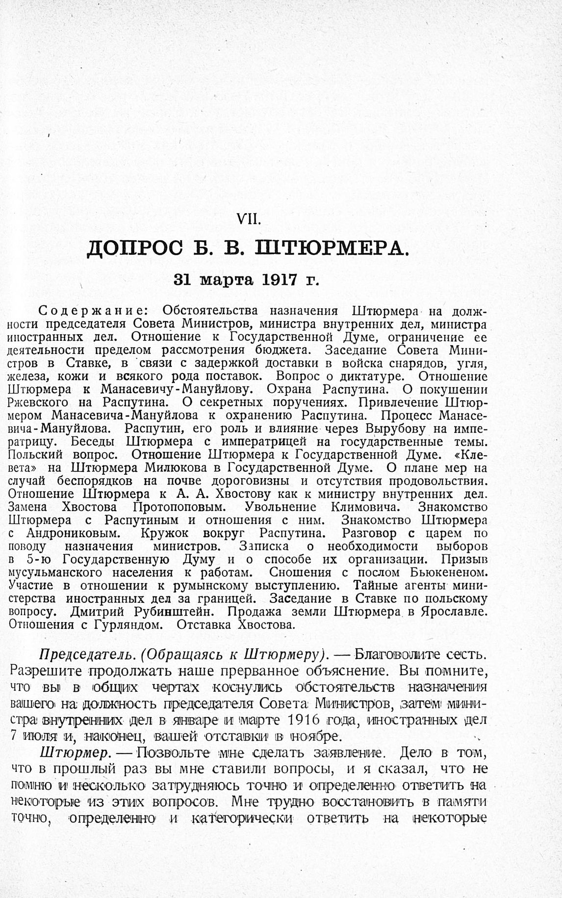 Допрос Б. В. Штюрмера. 31 марта 1917 г.