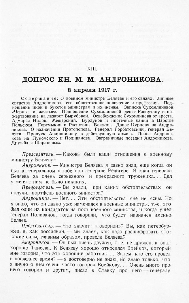 Допрос кн. М. М. Андроникова. 8 апреля 1917 г.
