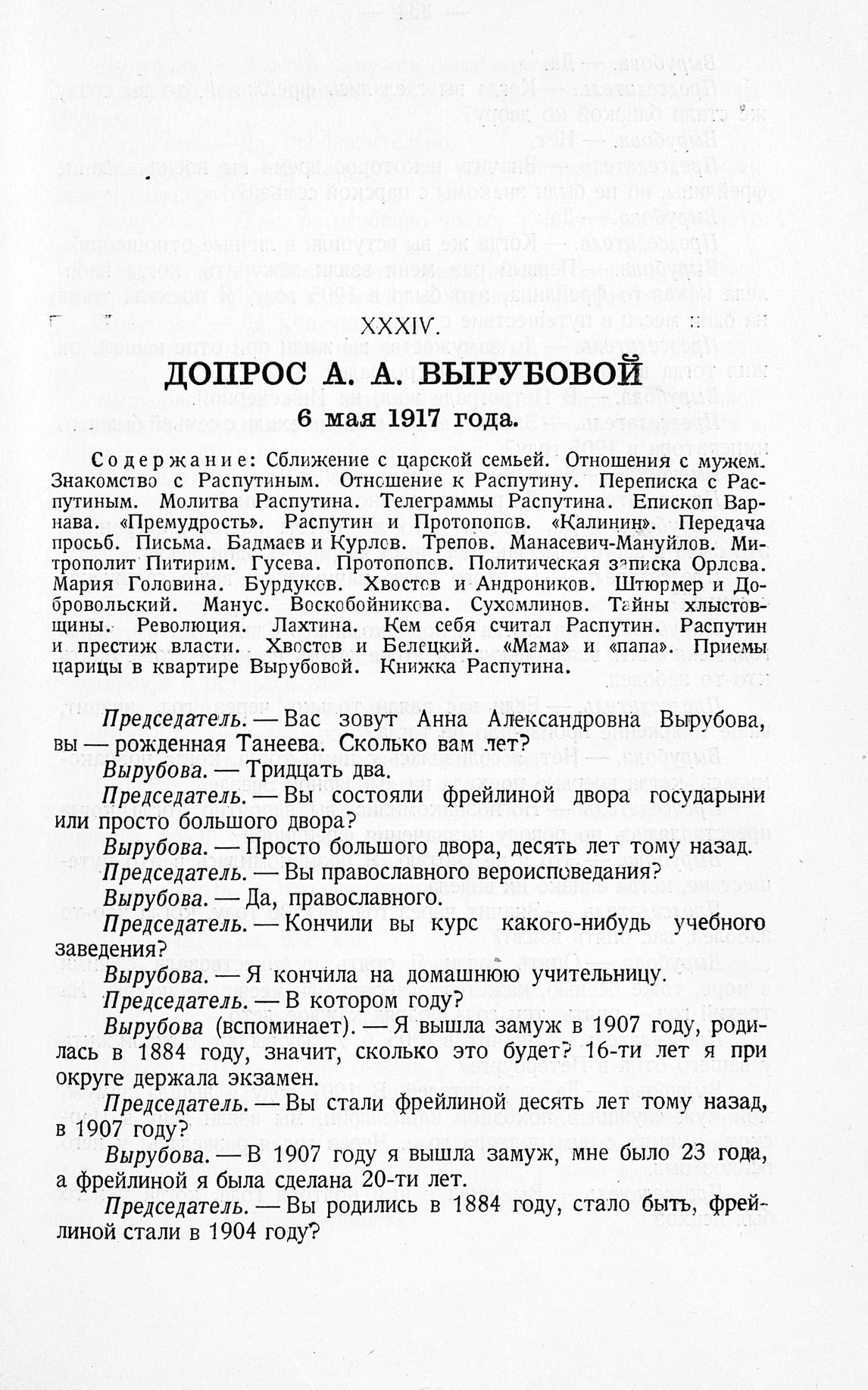 Допрос А. А. Вырубовой. 6 мая 1917 года